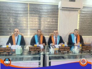 ترأس لجنة المناقشة الأستاذ المساعد الدكتور موفق عبو عواد وبعضوية كل من الأستاذ المساعد الدكتور زهير إسماعيل موسى. والمدرس الدكتور قتيبة نزار قاسم. وباشراف وعضوية المدرس الدكتور محمد ناظم جارو.