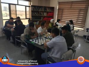 برعاية السيد رئيس جامعة الموصل الأستاذ الدكتور وحيد محمود الابراهيمي وبإشراف السيد عميد كلية الهندسة الأستاذ المساعد الدكتور عمر محمد حمدون , أقامت كلية الهندسة / شعبة النشاطات الطلابية / وحدة النشاط الرياضي بطولة كلية الهندسة بالشطرنج للطلبة والمنتسبين بالتعاون مع شعبة الاعلام والاتصال الحكومي في الكلية وشعبة النشاطات الطلابية في كلية الزراعة والغابات و شعبة النشاطات الطلابية في كلية الصيدلة، يوم الأربعاء الموافق 2025/10/15.