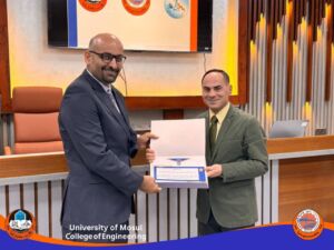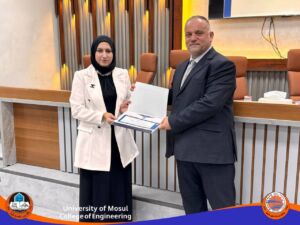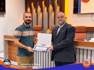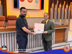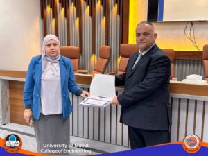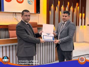 الأستاذ المساعد الدكتورمحمد طارق ياسين (رئيس القسم السابق) وذلك تثمينا للجهود التي بذلها خلال فترة تسنمه رئاسة القسم ، والمدرس الدكتورة هبة ناظم أمين الكواز وذلك تثمينا للجهود التي بذلتها خلال توليها تسييرأعمال القسم، والأستاذ الدكتور أحمد نصر بهجت، والأستاذ المساعد الدكتور ياسر محمد يونس، وذلك تثمينا للجهود التي بذلاها في القسم ومن خلال عمل اللجان كافة ومنها اللجنة العلمية. والأستاذ المساعد الدكتور فراس سامي حسيب على الجهد الرائع في القسم ولجنة البحوث العلمية ، والأستاذ المساعد الدكتور فرهاد عز الدين محمود، والأستاذ المساعد الدكتور شامل حمزة حسين، على الجهود المبذولة في القسم ومن خلال لجنة الجودة والأستاذ المساعد فواز ياسين عبدالله، على الجهود المبذولة في تطوير مختبرات القسم والمدرس الدكتور عمر موفق محمود، والمدرس عمر تراث توفيق، للجهد المتفاني في لجان القسم و على وجه الخصوص اللجنة الامتحانية والتدقيقية. والمدرس الدكتور عمر مصطفى علي (مقرر القسم السابق) وذلك تثمينا للجهود التي بذلها خلال فترة تسنمه مقررية القسم ، والمدرس المساعد علي غانم صابر على الجهد الواضح في اللجنة الامتحانية للقسم، والمدرس المساعد رغد أديب عثمان، على العمل المتواصل والدؤوب في لجان القسم ومنها التسجيل والنشاطات العلمية والسيد لؤي زهير بشير على الجهد المبذول من قبله في مختبرات القسم ، والسيدة لجين قصي فتحي، على الجهد المبذول في لجنة الدراسات العليا والسيد سنان خالد شريف على الجهد الواضح في لجان القسم والاعلام على وجه الخصوص.