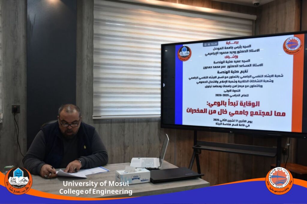 ضمن النشاطات العلمية لكلية الهندسة – قسم هندسة العمارة – جامعة الموصل وحرصها على تحقيق أهداف التنمية المستدامة، ولا سيما الهدف الرابع “التعليم الجيد”، عُقد يوم الأحد الموافق 16/تشرين الثاني/2025 لقاء ترحيبي مع طلبة المرحلة الأولى في القسم.