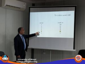 ضمن برنامج تطوير مهارات البحث العلمي لطلبة الدراسات العليا وضمن نشاطات كلية الهندسة، وفي إطار سعيها لتحقيق أهداف التنمية المستدامة ومنها الهدف الرابع ” التعليم الجيد”، أقام قسم الهندسة الكهربائية وبالتعاون مع قسم الدراسات والتخطيط / وحدة التنمية المستدامة في رئاسة جامعة الموصل يوم الأحد الموافق 30 تشرين الثاني 2025 ورشة عمل بعنوان “H-index وكيف نختار المجلة العلمية ”.
