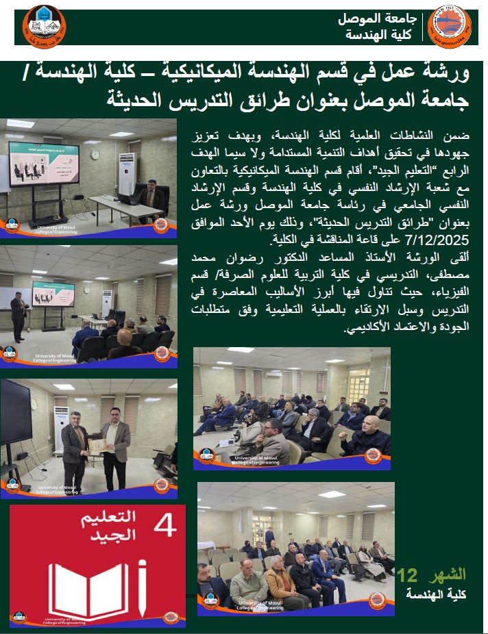 ناقشت كلية الهندسة / قسم الهندسة الكهربائية بجامعة الموصل رسالة ماجستير عن ” نمذجة وتحليل أمني لتطبيقات بنية القياس التحتية المتقدمة “، يوم الاحد الموافق 7 كانون الاول 2025 .