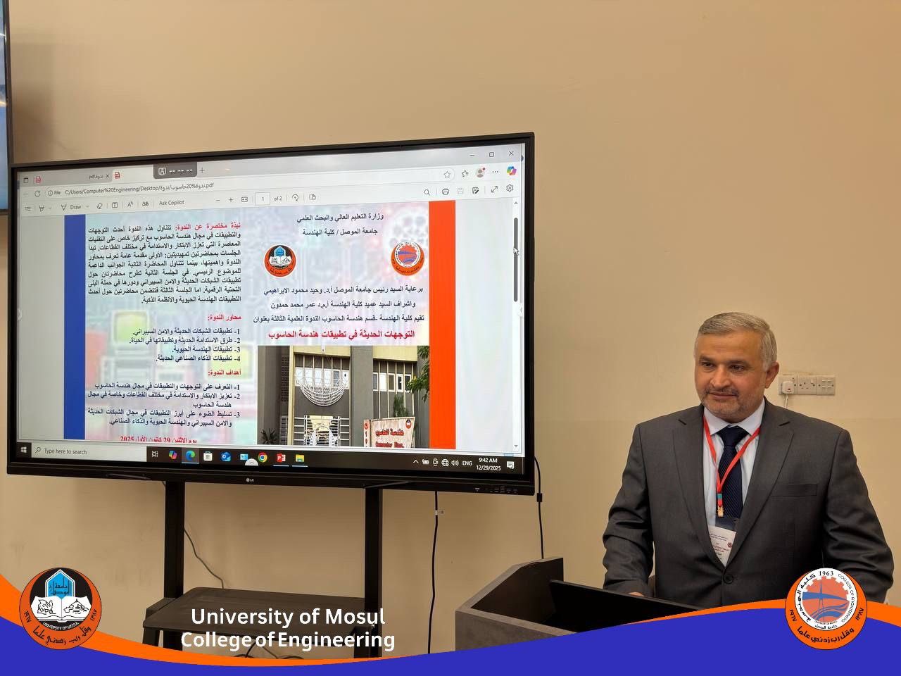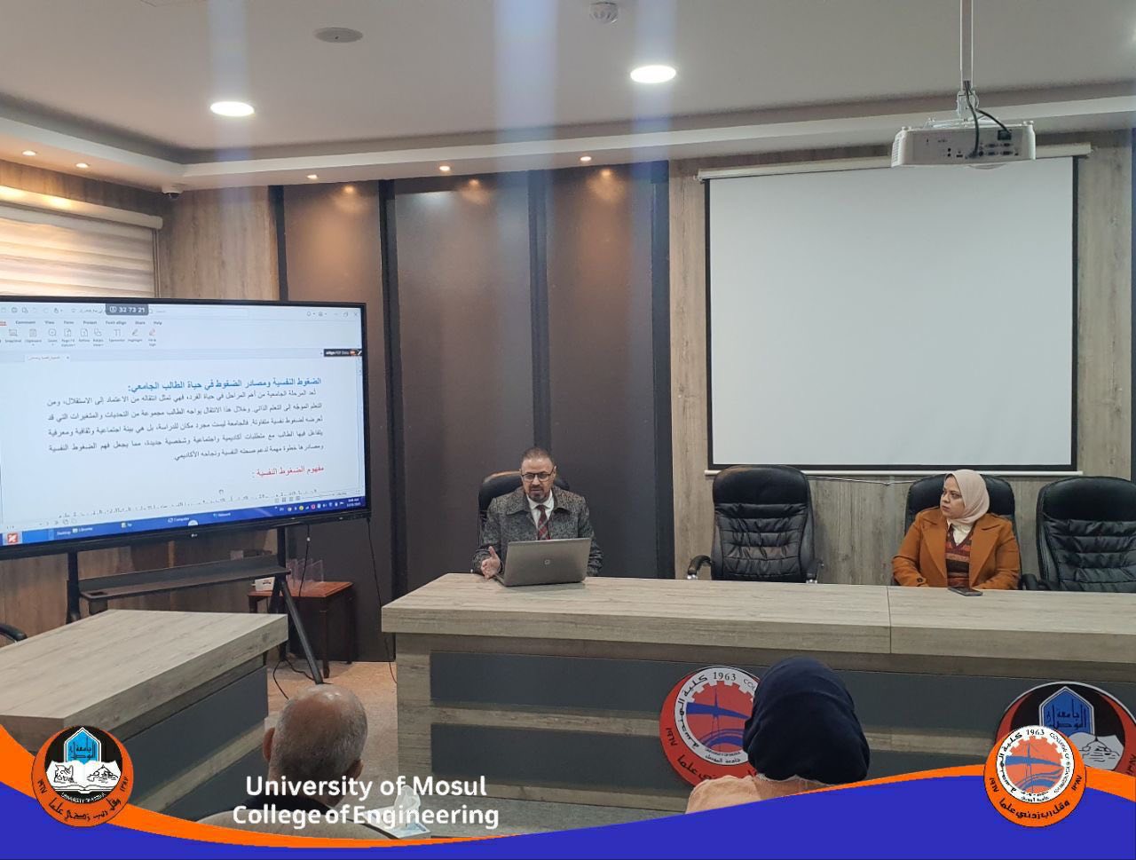 ضمن النشاطات العلمية لكلية الهندسة بجامعة الموصل، وفي إطار سعيها لتحقيق أهداف التنمية المستدامة، ولا سيما الهدف الرابع “ التعليم الجيد“ وبالتعاون مع (رئاسة جامعة الموصل) قسم الدراسات والتخطيط – وحدة التنمية المستدامة وإستكمالا لإجراءات امتحانات الدراسات العليا لنيل شهادة الدكتوراة والتزاما ببرامج وزارة التعليم العالي والبحث العلمي. أجرت كلية الهندسة /قسم الهندسة الحاسوب الامتحان الشامل الشفوي لطلبة الدكتوراة اليوم الإثنين الموافق 22 كانون الاول 2025 في قاعة المناقشات، بإشراف لجنة الدراسات العليا في القسم.