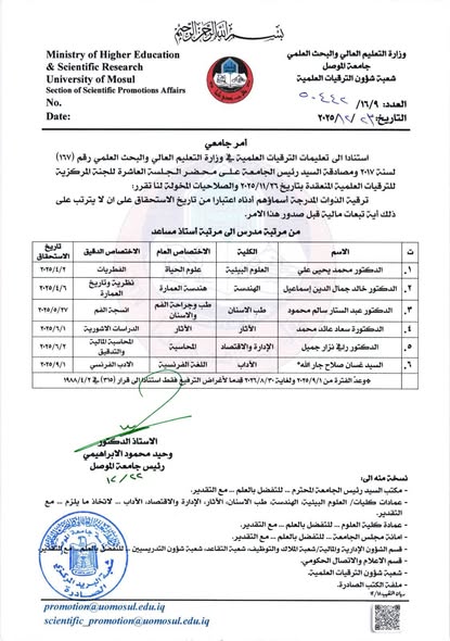 ناقشت كلية الهندسة / قسم الهندسة الكهربائية بجامعة الموصل أطروحة دكتوراه عن “تصميم وتحليل شبكة اتصالات مؤمنة لمصنع ذكي في الثورة الصناعية الرابعة”، يوم الثلاثاء الموافق 23 كانون الاول 2025 بحضور الاستاذ المساعد الدكتور عمر شرف الدين يحيى / رئيس قسم الهندسة الكهربائية وعدد من تدريسيي الكلية.