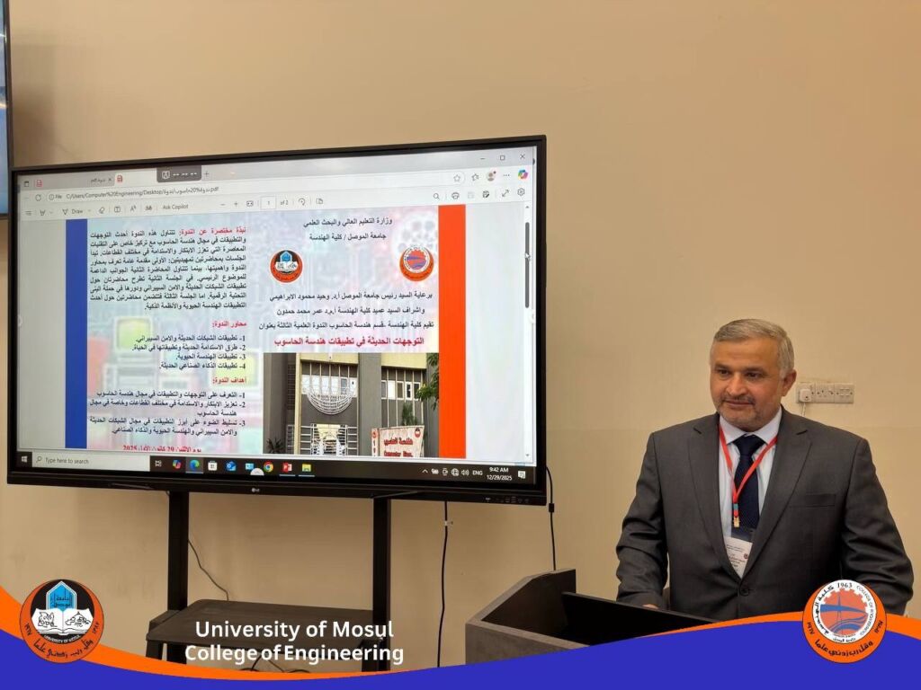 ضمن نشاطات كلية الهندسة وأهدافها في تحقيق أهداف التنمية المستدامة وبخاصة الهدف الرابع التعليم الجيد، قامت لجنة شؤون المرأة ولجنة التنمية المستدامة في كلية الهندسة بالتعاون مع وحدة شؤون المرأة وقسم الدراسات والتخطيط / وحدة التنمية المستدامة في رئاسة جامعة الموصل بتنظيم حلقة نقاشية بعنوان (اختيار التخصص خطوة نحو تمكين المرأة اقتصادياً) وذلك يوم الاثنين الموافق 29-12-2025 في قسم هندسة العمارة.