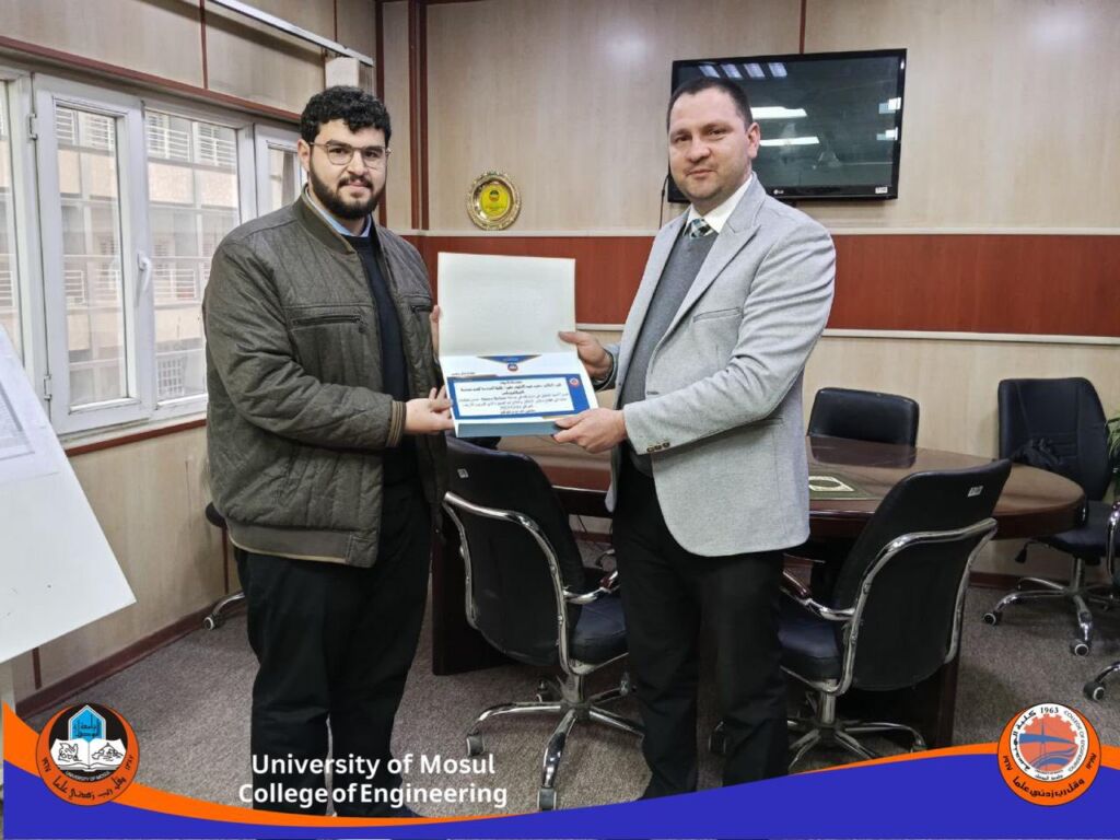بحضور السيد عميد كلية الهندسة الأستاذ المساعد الدكتور عمر محمد حمدون، ويرافقه السيد معاون العميد للشؤون العلمية الاستاذ المساعد الدكتور أيمن طالب حميد و السيد معاون العميد للشؤون الإدارية الدكتور بسام إحسان عبدالقادرالحافظ، وضمن سعي كلية الهندسة لتحقيق أهداف التنمية المستدامة ولاسيما الهدف الرابع “التعليم الجيد” والهدف الثامن ” العمل اللائق ونمو الاقتصاد” والهدف الحادي عشر ” مدن ومجتمعات محلية مستدامة” والهدف السابع عشر ” عقد الشراكات لتحقيق الأهداف” أقام قسم الهندسة الكهربائية يوم الأثنين الموافق 5 كانون الثاني 2026 حفلاً لتكريم فريق فحص الطاقة الكهربائية الطلابي ضمن مشروع جسر الرحمة الذي أقامته جامعة الموصل في قرية باطنايا، استهل الحفل بتكريم فريق فحص الطاقة الكهربائية الطلابي، تقديراً لجهودهم الاستثنائية ضمن مشروع “جسر الرحمة” الذي أطلقته جامعة الموصل في قرية باطنايا. كما شمل التكريم الفريق المشرف من الأساتذة الذين رافقوا الطلبة وساهموا في إنجاح هذه المبادرة التطوعية، وتم منح أعضاء الفريق شهادات تقديرية تقديرا لجهودهم التطوعية المتميزة ضمن مشروع جسر الرحمة