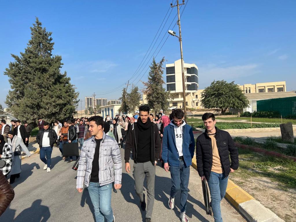 اقام قسم هندسة العمارة سفرة علمية يوم الاربعاء الموافق 28/12/2022 لطلبة المرحلة الاولى مع الكادر التدريسي للمادة الدراسية “التصميم المعماري” داخل الحرم الجامعي. هدفت السفرة العلمية الى الاطلاع على التكوينات المعمارية للابنية الجامعية والتعرف على المبادئ التصميمية التي تم اعتمادها في هذه الابنية وذلك ضمن متطلبات التجارب واكتساب الخبرة العلمية للطلاب. الكادر التدريسي المرافق للطلبةفهم أ.م. نسمة معن محمد وأ.م. احمد الفخري وم.د. ريم علي طالب وم.م. لمى محمد يحيى وم.م. اسراء مال الله م.م. راوية مروان و المهندسة مفاز صديق والمهندسة فرح جلو.