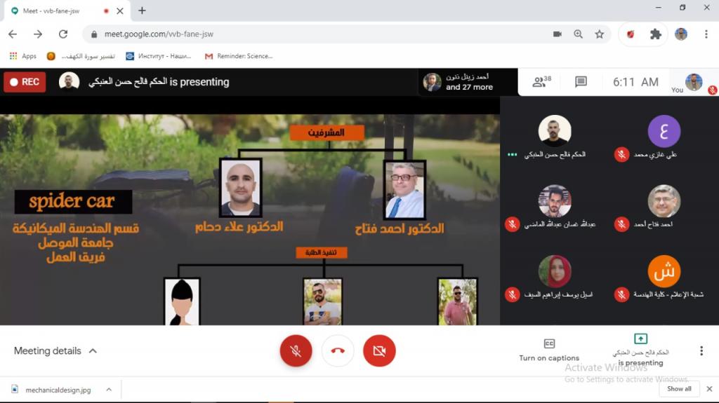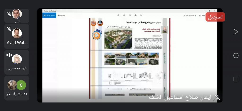 تستمر ولليوم الثاني على التوالي فعاليات مهرجان مشاريع التخرج لطلبة كلية الهندسة. حيث تم اليوم الاحد الموافق 6/9/2020 استئناف هذه الفعاليات من خلال عرض مشاريع طلبة قسم هندسة العمارة وطلبة قسم الهندسة الميكانيكية خلال الجلسة الأولى التي بدأت في تمام الساعة 4:00 عصرا واستمرت لغاية الساعة 7:00 مساء.تضمنت مشاريع قسم هندسة العمارة تصميم العديد من المباني التي تخدم المجتمع ومنها تصميم كليات ومراكز ومجمعات طبية ومراكز بحثية وثقافية. وتناولت مشاريع قسم الهندسة الميكانيكية تصميم المبادلات الحرارية والعربات العنكبوتية التي تحاكي تغير التضاريس وبحوث أخرى تتعلق بتركيب المواد المختلفة وكيفية تحسينها. تم بعد ذلك انطلاق فعاليات الجلسة الثانية التي بدأت في تمام الساعة 8:00 مساءا واستمرت لغاية الساعة 11:00 ليلا وتم خلالها عرض مشاريع طلبة قسم هندسة السدود والموارد المائية وقسم هندسة الميكاترونكس.وتضمنت مشاريع قسم هندسة السدود والموارد المائية تصميم بعض المشروعات التي تخدم المجتمع من ناحية تصميم مجاري مائية لتجميع وتصريف مياه الامطار ومياه الصرف وتصميم السداد وتصميم منظومات الري الحقلي وبالأخص منظومات الرش والتنقيط. اما مشاريع قسم هندسة الميكاترونكس فتضمنت تصميم العديد من الأجهزة والأدوات كجهاز فحص نقاوة الذهب وتصميم الروبوتات إضافة الى بحوث تخص حفظ الطاقة.