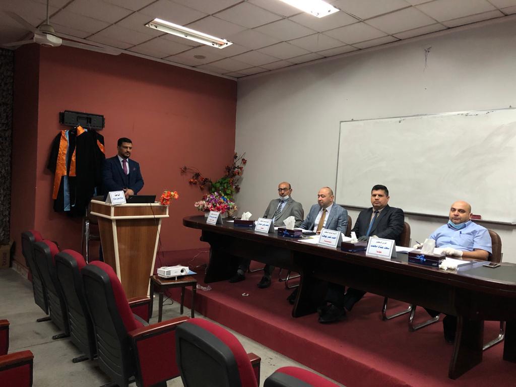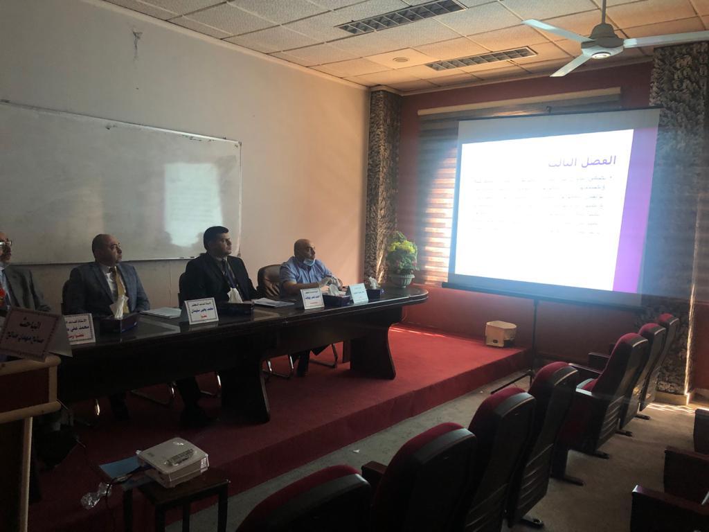 وقد تألفت لجنة المناقشة من أ.م.د احمد نصر بهجت السماك رئيسا وعضوية كل من أ.م.د محمد يحيى سليمان عضوا و الدكتور سعد عناد احمد عضوا و أ.م.د محمد علي عبدالله الراوي عضوا و مشرفا.