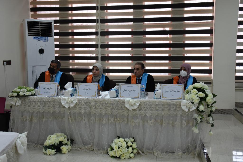 ومن الجدير بالذكر فان لجنة المناقشة تألفت من أ. د. رعد هوبي رزوقي رئيسا وعضوية كل من أ. م. د. غنية عبد المجيد حياوي وم. د. مينا احمد داؤد فضلا عن أ. م. د. موفق يونس محمد عضوا ومشرفا.