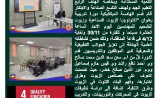 دورة تدريبية في قسم الهندسة الميكانيكية بعنوان “تكنولوجيا الزيوت الصناعية وزيوت التشحيم”