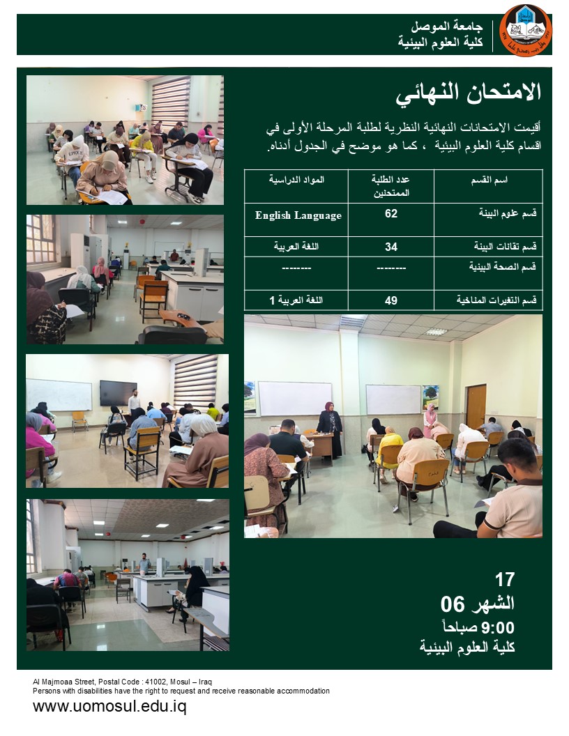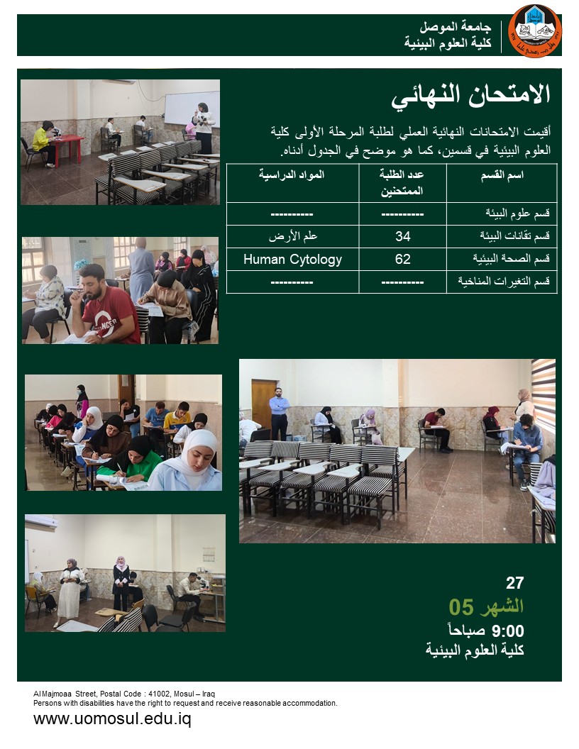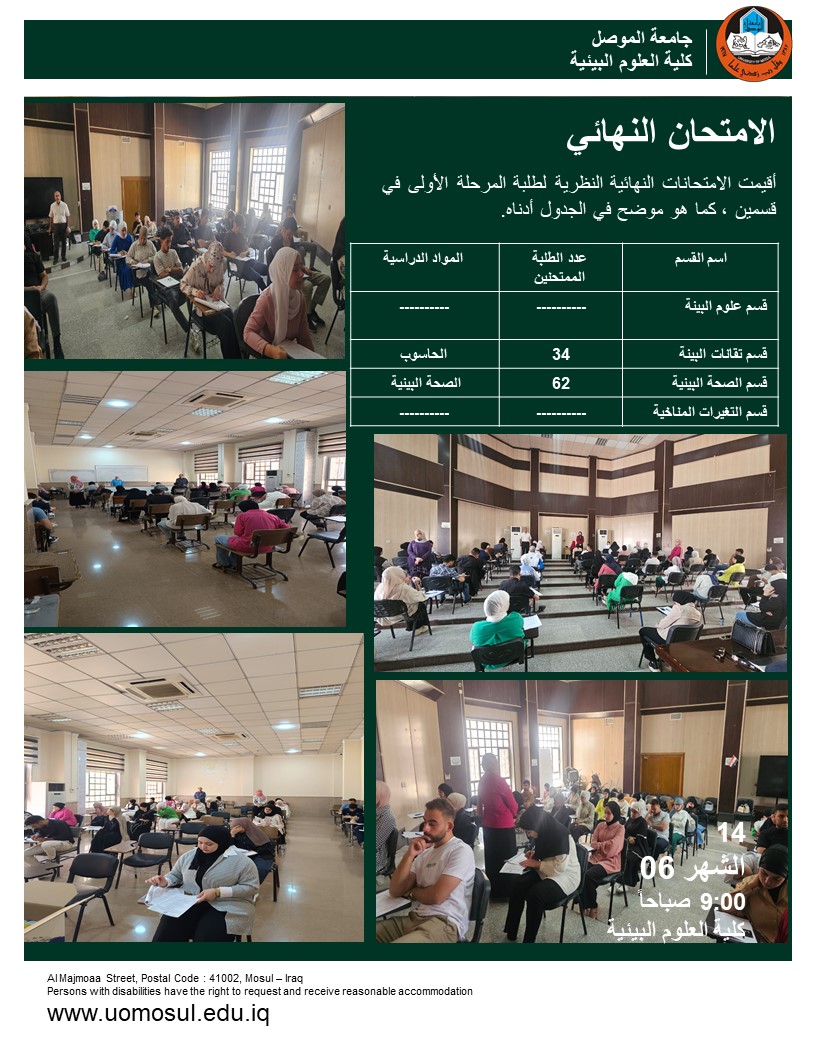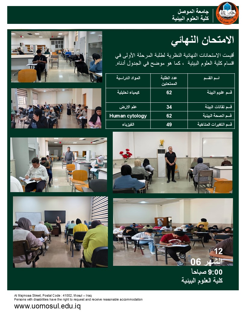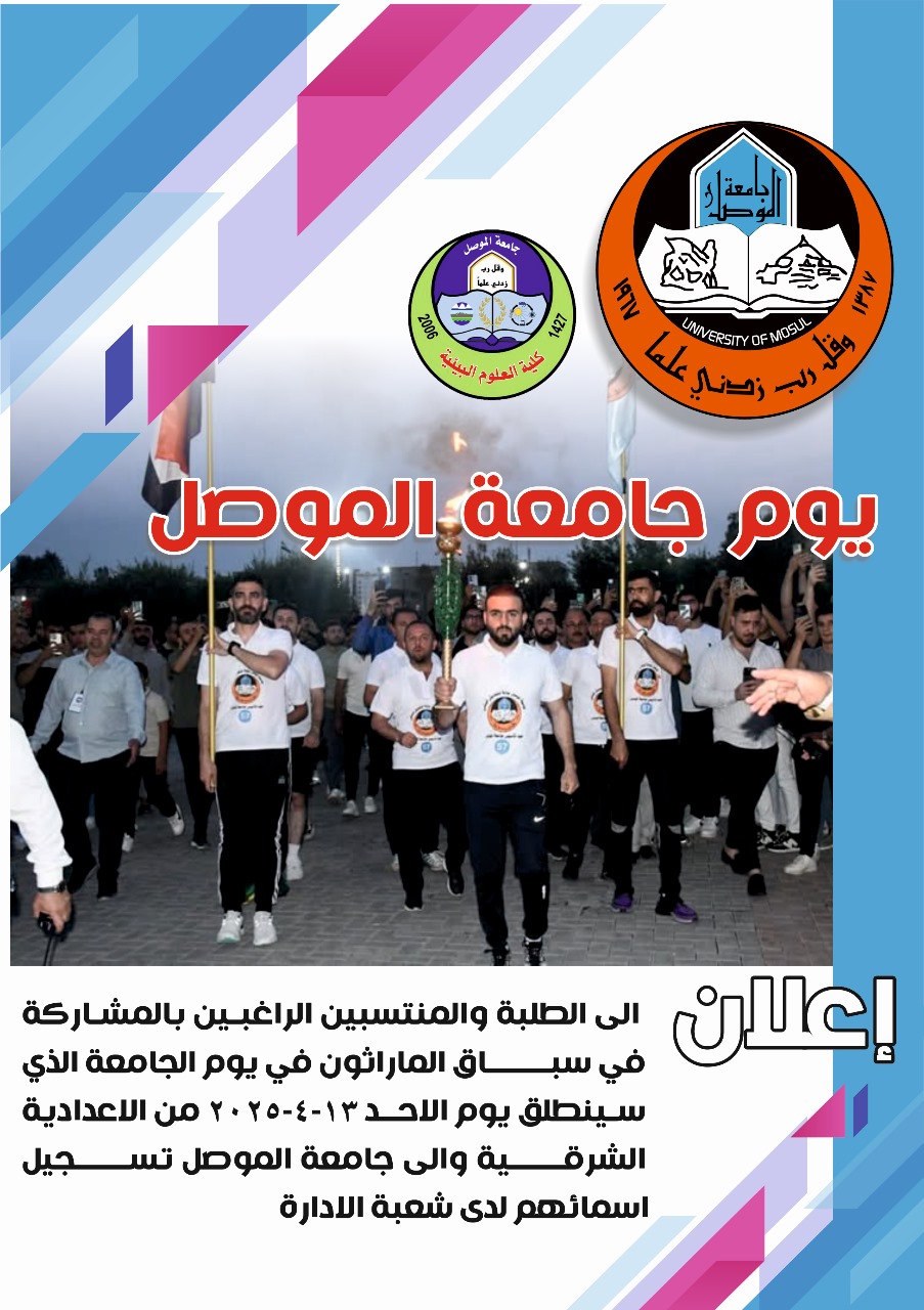 برعاية السيد رئيس جامعة الموصل الأستاذ الدكتور وحيد محمود الابراهيمي واشراف السيد عميد كلية العلوم البيئية الأستاذ الدكتور مثنى جاسم الطائي وضمن سعي كلية العلوم [إقرأ المزيد]