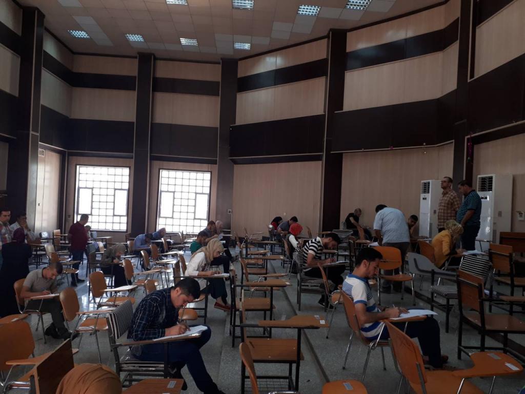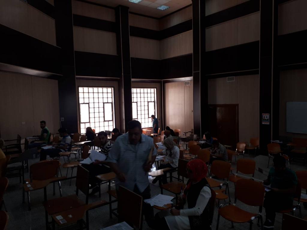 بأشراف مباشر من عمادة كلية علوم البيئة وتقاناتها تم وعلى رحاب قاعات الكلية الأمتحان التنافسي للمتقدمين للدراسات العليا (الماجستير) في يوم الأثنين الموافق 2018/6/25حيث قامت عمادة الكلية بجولة تفقدية أطلعت خلالها على سير الأمتحانات وشمولية الأسئلة الأمتحانية والخدمات الأدارية وأحتياجات الطلبة وتوفير سبل راحتهم خلال ساعات الأمتحان ،حيث سيكون هذا الأمتحان أحد معايير التفاضل في القبول الى جانب المعدل وشهادتي اللغة الأنكليزية وكفاءة الحاسبة بناءا على التعليمات التي أصدرتها وزارة التعليم العالي والبحث العلمي ، هذا وقد سارت الأمتحانات بشكل جيد جدا متمنين لجميع الطلبة المتقدمين الموفقية والنجاح.كما وتمت في اليوم التالي مقابلة شفهية للمتقدمين والتي جرت وقائعها في الكلية وبحضور عدد من تدريسي الكلية ذوي الأختصاص
