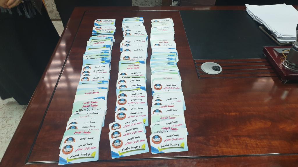 تنفيذاً للتوجيهات السديدة للسيد رئيس جامعة الموصل الأستاذ الدكتور قصي كمال الدين الأحمدي بأطلاق حملة (إكرام ضيوف جامعة الموصل ) من طلبة الأقسام الداخلية قامت عمادة الكلية متمثلةً بالسيدة عميد الكلية الأستاذ المساعد الدكتور يسرى مجيد شهاب الشاكر وبمتابعة وحدة الأرشاد التربوي في الكلية بتوزيع بطاقات إطعام الطلبة على ضيوف الكلية من طلبة الأقسام الداخلية مساهمة منها بدعم الطلبة خلال فترة الأمتحانات وتخفيف العبء عن كاهلهم متمنين لهم الموفقية والنجاح.