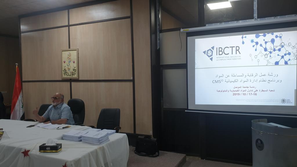 برعاية الأستاذ الدكتور قصي كمال الدين الأحمدي رئيس جامعة الموصل المحترم وبحضور وإشراف الأستاذ الدكتور مفيد ذنون يونس وبالتعاون مع كلية علوم البيئة متمثلة بالأستاذ المساعد الدكتور مازن نزار فضل وكيل عميد الكلية ومدير الشؤون العلمية الدكتور أيمن محمد جبر والدكتورة يسرى مجيد الشاكر وعدد كبير من كادر الكلية أقامت شعبة السيطرة على تداول المواد الكيماوية والبايولوجية ورشة عمل تحت عنوان( الرقابة والمساءلة عن المواد وبرنامج نظام إدارة المواد الكيميائية CIMS) في يوم الأربعاء الموافق 10/16 ولغاية 2019/10/17 أكد فيها الدكتور مفيد ذنون في كلمته أهمية إقامة هذه الدورة التي تساهم في رفع مستوى الأداء المعرفي والتقني للمشاركين وتلقى خلالها المشاركون عددا من الدروس النظرية وتطبيقاتها العلمية لمدة يومين مما مكنهم من معرفة أغلب الجوانب المتعلقة بطرق حفظ المواد الكيماوية وأخر التحديثات العلمية عليها وبأشراف عدد من التدريسيين الممارسين ،كما هدفت الدورة الى تطوير الخبرات العلمية للمتدربين وتعزيز السلوك في المختبرات كذلك زيادة معلوماتهم في مجال حفظ الموادالكيمياوية والتركيز على الجانب العملي والأمن والسلامة وإكسابهم الخبرة اللازمة لمزاولة العمل المختبري .وفي نهاية الورشة منح المشاركون شهادة مشاركة لكيفية حفظ المواد الكيماوية وسبل إستخدام السلامة كما وشكر الدكتور مهند يقظان رئيس اللجنة التحضيرية عميد الكلية والمشاركين في هذه الورش