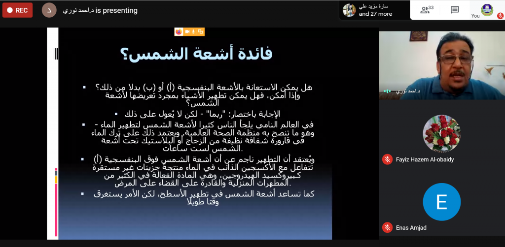 اختتام اعمال الدورة التدريبية الموسومة (كورونا بين فرضيات النشوء والطرق المثلى للتعامل معها) التي اقامتها كلية علوم البيئة وتقاناتها للفترة من 20-22 ايار 2020.تنفيذا لتوجيهات السيد رئيس جامعة الموصل الاستاذ الدكتور قصي كمال الدين الاحمدي على ضرورة التواصل العلمي وباشراف مباشر من قبل السيدة عميد الكلية الاستاذ المساعد الدكتورة يسرى مجيد الشاكر اختتمت اليوم الجمعة الموافق 22/5/2020 اعمال الدورة التدريبية الموسومة “كورونا بين فرضيات النشوء والطرق المثلى للتعامل معها” التي اقيمت عبر الفضاء الالكتروني خلال ثلاثة ايام . تطرقت الدورة الى حقائق وأدلة وفرضيات نشوء الفايروس, وكذلك تناولت الدورة موضوع مناقشة توصيات منظمة الصحة العالمية للوقاية من الفايروس واخيرا الطرق الوقائية للتعامل مع فايروس كورونا. هدفت الدورة الى استعراض لفرضيات نشوء فايروس كورونا , ومناقشها ضمن اطار درجة احتمالية صحة هذه الفرضية وكذلك مناقشه اهم الشروط الواجب اتباعها اثناء التعامل مع فايروس كورونا ومسبباته.