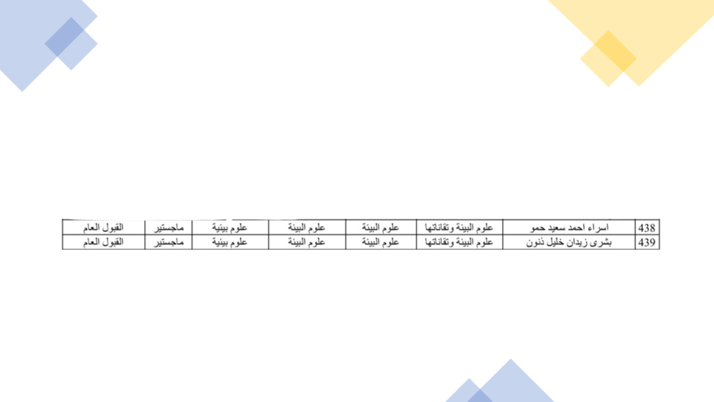 اعلان اسماء الطلبة الاحتياط المشمولين بالتوسعة في خطة القبول للدراسات العليا للعام الدراسي 2020-2021 في كلية علوم البيئة وتقاناتها