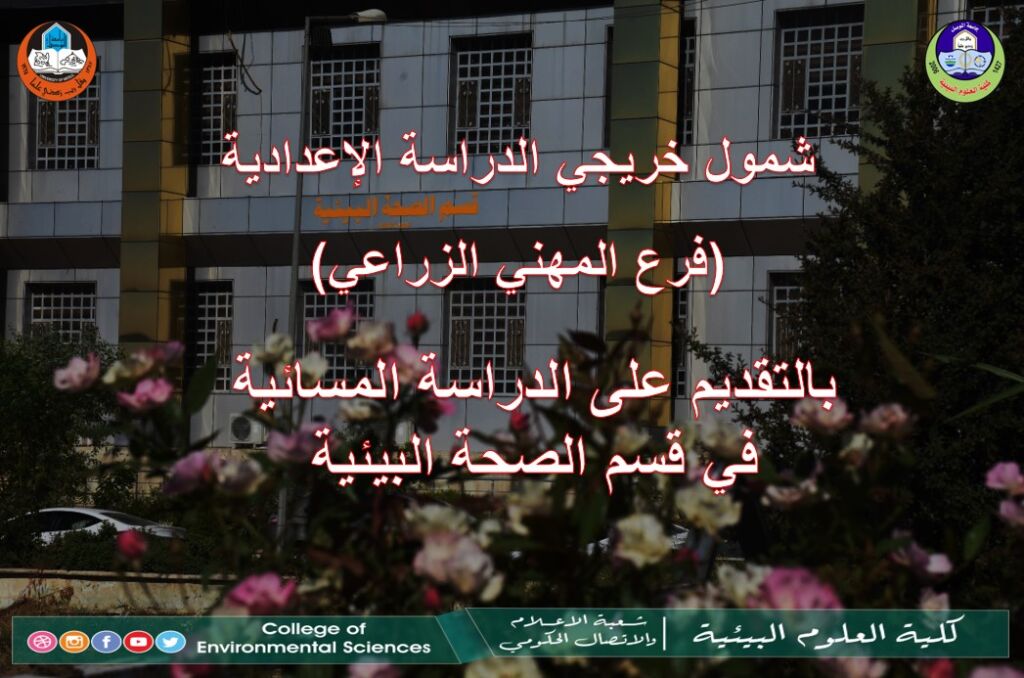 برعاية الأستاذ الدكتور قصي كمال الدين الأحمدي رئيس جامعة الموصل واشراف السيدة عميد كلية العلوم البيئية الأستاذ المساعد الدكتورة يسرى مجيد الشاكر، تقيم كلية العلوم البيئية/ قسم الصحة البيئية ورشة عمل بعنوان (انتاج وعزل وتشخيص المركبات الفعالة طبياً باستخدام بعض التقنيات الحديثة)، وذلك في يوم الخميس الموافق ٧ تشرين الثاني ٢٠٢٤ الساعة التاسعة صباحاً في قاعة مناقشات الكلية.