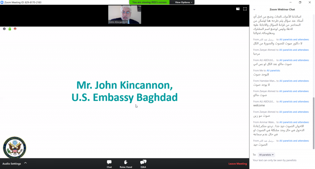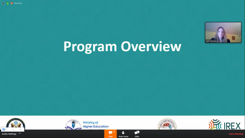 ضمن اطار نشاطات كلية علوم البيئة وتقاناتها وبناء على توجيهات وزارة التعليم العالي والبحث العلمي, شارك تدريسي في كليتنا ( م.م نبيل زهير توفيق) في اعمال برنامج التدريب المهني للتعليم الإلكتروني (إعداد المدرّبين) الذي بدأ اليوم الخميس 30/4/2020 في اروقة وزارة التعليم العالي والبحث العلمي بالتعاون مع هيئة البحث والتبادل الدولي IREX عبر التطبيق الالكتروني ZOOM حيث يضم هذا البرنامج سلسلة من محاضرات التدریب المھني للتعلم الإلكتروني لدعم قدرات أعضاء الھیئة التدریسیة العراقیة على دمج التعلم الإلكتروني ضمن الحرم الجامعي العراقي.