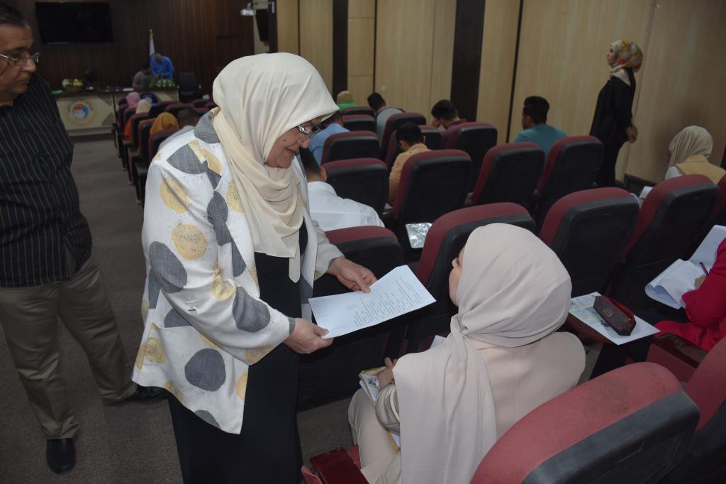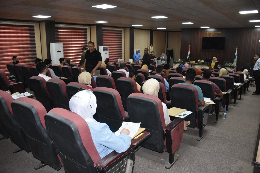 تفقدت الاستاذ المساعد الدكتورة يسرى مجيد الشاكر عميد الكلية يرافقها السيد معاون العميد للشؤون العلمية الدكتور علي بشير عزيز والسيد مدير شعبه شؤون الدراسات العليا في الكلية اليوم الاحد 22 ايار 2022 سير الامتحان التنافسي للطلبة المتقدمين للدراسات العليا للعام الدراسي 2022-2023.اعقبها اجراء مقابلة شخصية لجميع الطلبة المتقدمين للدراسات العليا للعام الدراسي 2022-2023.واكدت السيدة العميدة ان الامتحان والمقابلة جرت بانسيابة عالية بعد تهيأة جميع السبل الكفيلة بانجاحهم على أكمل وجه من ناحية توزيع الطلبة الممتحنين وتوفير الظروف الملائمة لاجراءها.شعبة الاعلام والعلاقات العامة