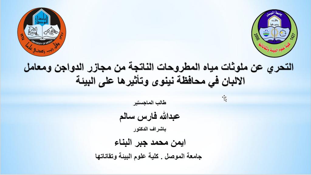 التحري عن ملوثات مياه المطروحات الناتجة من مجازر الدواجن ومعامل الالبان في محافظة نينوى وتأثيرها على البيئة