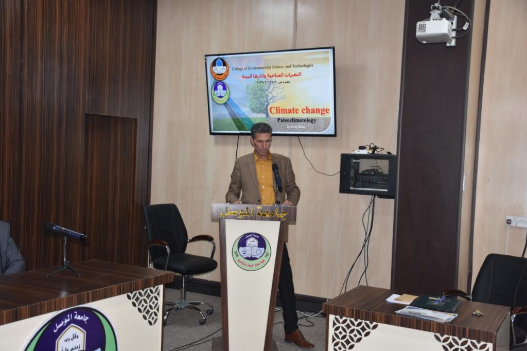 باشراف وحضور السيدة عميد الكلية الأستاذ المساعد الدكتورة يسرى مجيد الشاكر انطلقت صباح اليوم الاحد 20 تشرين الثاني 2022 في كلية علوم البيئة وتقاناتها اعمال الدورة تدريبية الموسومة ((التغيرات المناخية واثارها البيئية)) والتي تستمر للفترة من 20-22 تشرين الثاني 2022.تضمنت الدورة في يومها الاول محاضرتين القى المحاضرة الاولى الدكتور ((علي زين العابدين حيدر)) بعنوان ” التغيرات المناخية عبر الحقب الزمنية وعوامل واسباب حدوث التغيرات” فيما القى الدكتور((تحسين علي حسن)) محاضرة بعنوان ” التغيرات المناخية وتأثيرها على الموارد المائية”.تطرقوا من خلالها الى تغييرات المناخ وتاثيراتها على البيئة عبر الحقب الزمنية و عواقبها السلبية على الكائنات الحية بالاضافة تاثير التغييرات المناخية على الموارد المائية و اشكال هذا التاثير و كيفية اتباع سبل للتقليل من الاثار السلبية والحفاظ على هذه الموارد المائية وحمايتها و طرق ادارتها.