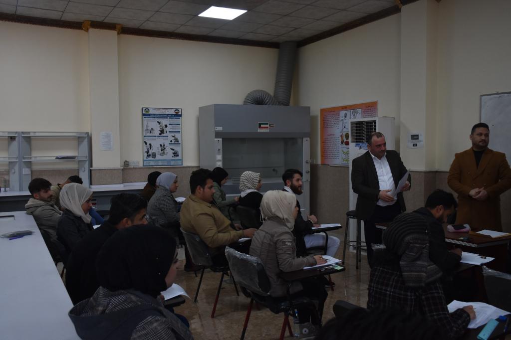 السيدة عميد الكلية تتفقد سير الامتحانات النهائية للكورس الاول في قسم تقانات البيئة…اجرت السيدة عميد الكلية الاستاذ المساعد الدكتورة يسرى مجيد الشاكر صباح اليوم الاحد 15 كانون الثاني 2023 جولة تفقدية لامتحانات نهاية الكورس الاول في قسم تقانات البيئة للتأكد من سير الامتحانات بسلاسة ونجاح. بعدها اجرت السيدة العميدة زيارة للجنة الامتحانية في القسم واطلعت على سير عمل اللجنة وبحضور السيد رئيس قسم التقانات الاستاذ المساعد الدكتور اياد فضيل واعضاء اللجنة. ومن جانبها اثنت السيدة العميدة على عمل اللجنة والاجراءات المتبعة في ادارة الامتحانات بكل سلاسة ونجاح.شعبة الاعلام والعلاقات العامة