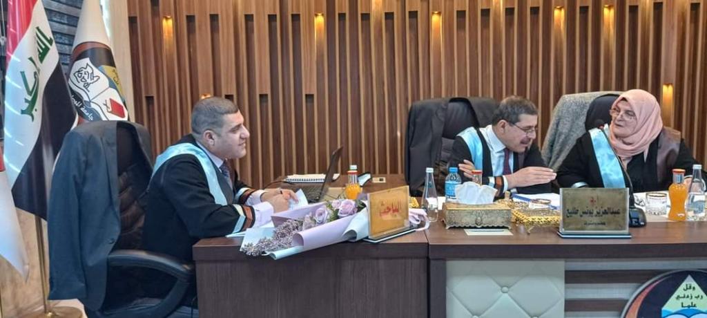 السيدة عميد الكلية عضو لجنة مناقشة أطروحة دكتوراه في كلية التربية للعلوم الصرفة/قسم علوم الحياة…شاركت السيدة عميد كلية علوم البيئة وتقاناتها الاستاذ المساعد الدكتورة يسرى مجيد الشاكر في عضوية لجنة مناقشة اطروحة الدكتوراه في كلية التربية للعلوم الصرفة للطالب محمود فائز محمد في قسم علوم الحياة بعنوان “الواقع البيئي لوادي الدانفيلي وتأثيراته البيئية على نهر دجلة باستخدام الموديلات الرياضية في مدينة الموصل” وذلك يوم الاربعاء المصادف 8 شباط 2023.اجريت الدراسة في مختبرات وحدة البحوث التابعة لكلية التربية للعلوم الصرفة/ جامعة الموصل, و هدفت الى تقييم الواقع البيئي لوادي الدانفيلي وتأثيراته البيئية على نهر دجلة باستخدام الموديلات الرياضية في مدينة الموصل.تراس لجنة المناقشة الاستاذ الدكتور محمد سعيد فيصل وعضوية كل من الاستاذ الدكتور حسن صابر محمد, الاستاذ المساعد الدكتور دلشاد كنجو احمد من جامعة صلاح الدين –اربيل /كلية العلوم, والاستاذ المساعد الدكتور عبدالمنعم محمد علي كنه من كلية العلوم وبإشراف وعضوية الاستاذ الدكتور عبد العزيز يونس طليع.شعبة الاعلام والعلاقات العامة