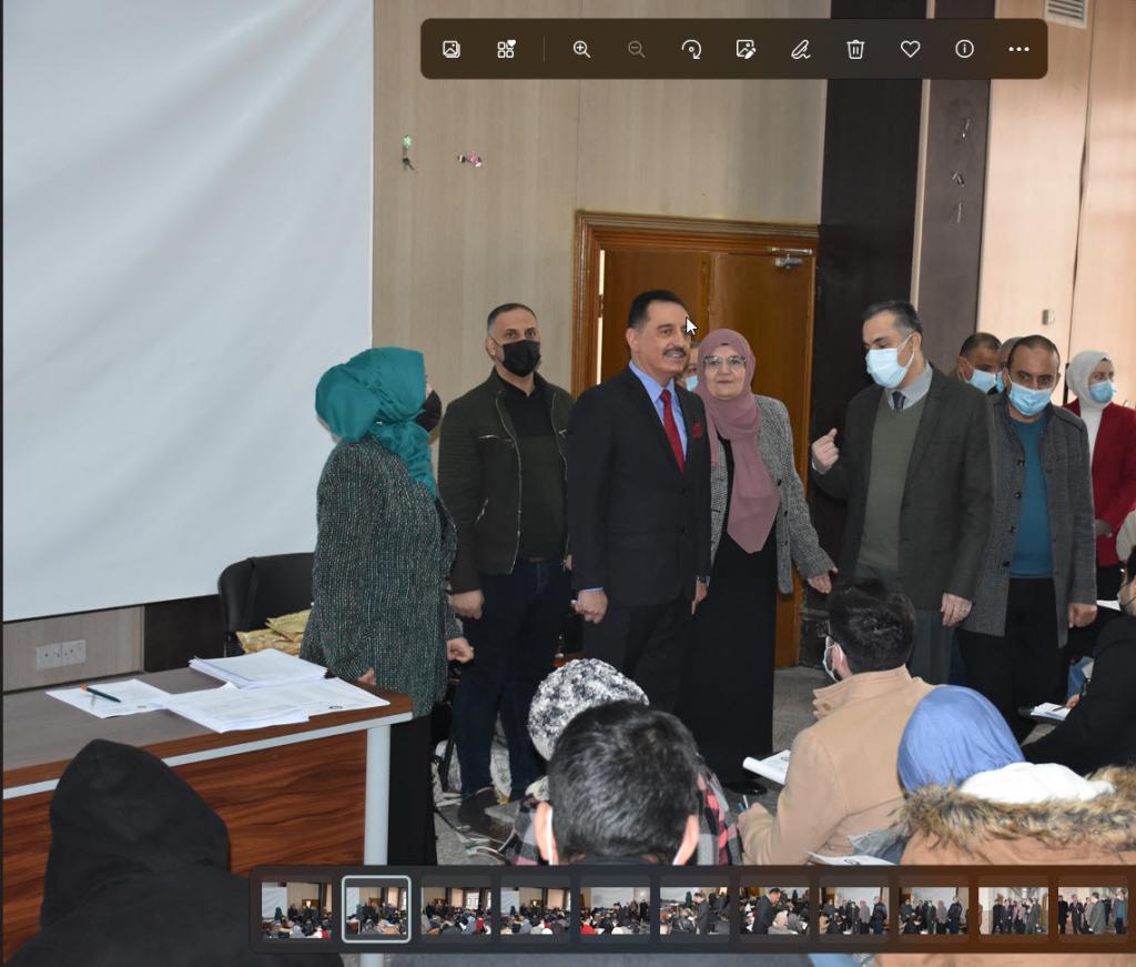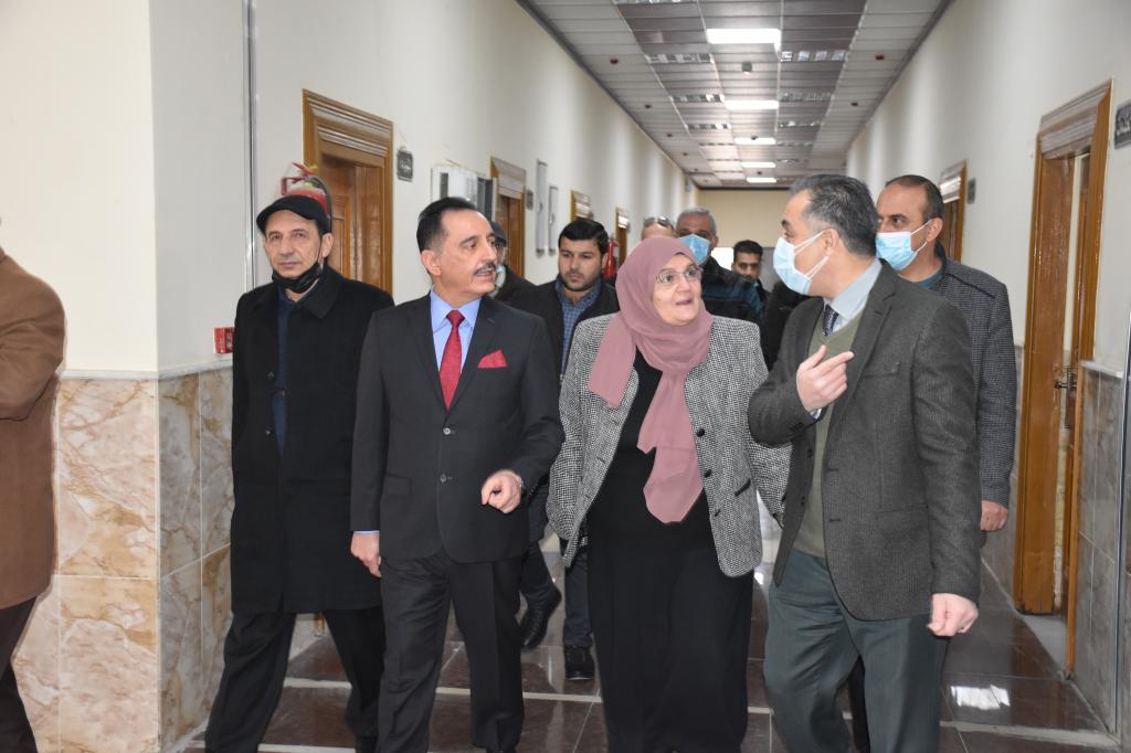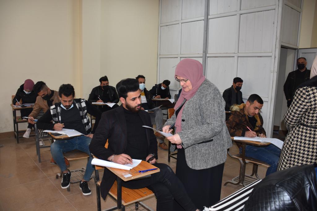 تفقد الاستاذ الدكتور قصي كمال الدين الاحمدي سير الامتحانات النهائية للكورس الدراسي الاول الحضوري لطلبة الدراسات الاولية وكان في استقباله السيدة عميد الكلية الاستاذ المساعد الدكتورة يسرى مجيد الشاكر يرافقها كل من السيد معاون العميد للشؤون العلمية الدكتور علي بشير عزيز والسادة رؤساء الاقسام العلمية.جرى خلالها زيارة قسم تقانات البيئة للاطلاع على مجريات الامتحانات واستطلاع اراء الطلبة للتأكد من سير العملية الامتحانية بسلاسة ونجاح. كما اجرى السيد رئيس الجامعة زيارة للقاعات الامتحانية المخصصة لطلبة كلية الطب وبحضور السيد عميد كلية الطب الأستاذ الدكتور باسل محمد نذير سعيد.شعبة الاعلام والعلاقات العامة