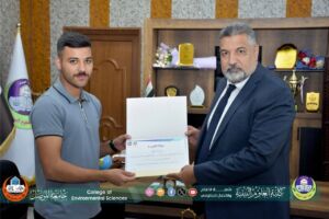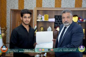 قدّم السيد عميد كلية العلوم البيئية الأستاذ الدكتور مثنى جاسم الطائي كتب شكر وتقدير إلى مجموعة من الطلبة المبدعين الذين أسهموا بشكل فاعل في دعم نشاطات الكلية، من خلال مشاركاتهم المستمرة والمتميزة في الفعاليات العلمية والثقافية والخدمية، ومساهماتهم في تقديم صورة مشرّفة عن طلبة كلية العلوم البيئية.