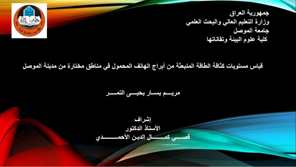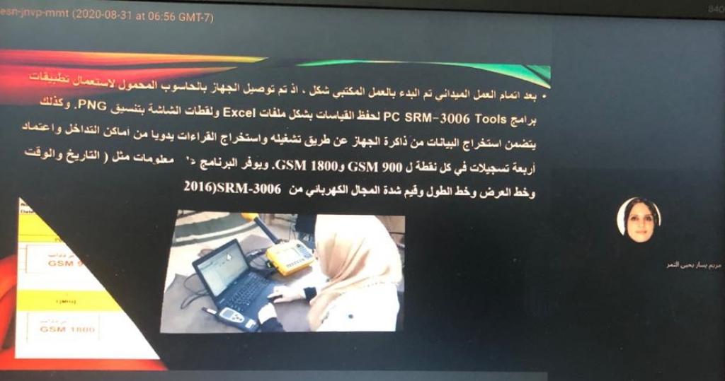 ضمن النشاطات العلمية لكلية علوم البيئة وتقاناتها/ قسم علوم البيئة .. جرى اليوم الاثنين الموافق 2020/8/31 القاء سمينار إلكتروني من قبل طالبة الماجستير مريم يسار يحيى التمر بعنوان”قياس مستويات كثافة الطاقة المنبعثة من أبراج الهاتف المحمول في مناطق مختارة من مدينة الموصل”و قد حضر السمينار السيدة عميد الكلية الاستاذ المساعد الدكتورة يسرى مجيد الشاكر والسيد رئيس قسم علوم البيئة الاستاذ المساعد الدكتور محمد ابراهيم خليل و مجموعة من أساتذة القسم المحترمون.تناول السيمنار قياس مستويات كثافة الطاقة المنبعثة من أبراج الهاتف المحمول في مناطق مختارة من مدينة الموصلهدف البحث الى دراسة وقياس مستويات كثافة الطاقة الكهرومغناطيسية في مناطق مختارة من مدينة الموصل والمنبعثة من أبراج الهاتف المحمول و مقارنتها مع معايير السلامة الدولية و الحصول على خريطة للمواقع المختارة موزعة عليها مستويات كثافة الطاقة.وبيان علاقة مستويات كثافة الطاقة مع المسافة، وإيجاد تأثير درجة الحرارة والرطوبة الجوية. و كما تأتي أهمية هذه الدراسة لعدم وجود دراسة سابقة في مدينة الموصل عن حالة التلوث الكهرومغناطيسي المنبعث من أبراج الهواتف المحمولة.تم خلال السمينار مناقشة بعض الفقرات العلمية المتعلقة بموضوع الدراسة مع الطالبة كما تم طرح مجموعة من الأسئلة التي من شأنها أن تغني الرسالة من الناحية العلمية .