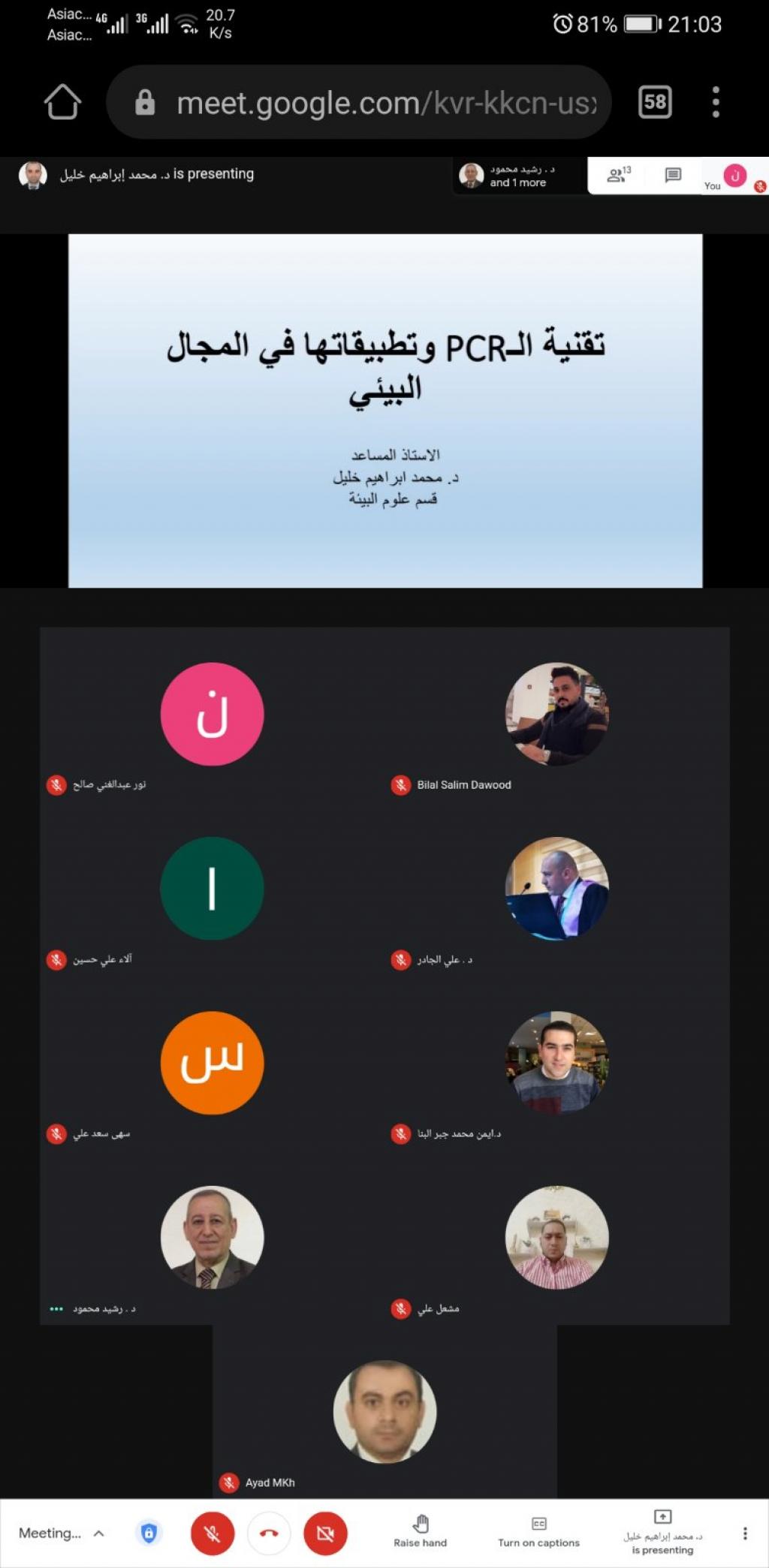 القاء سيمنار يناقش تقنية الـPCR وتطبيقاتها في المجال البيئي