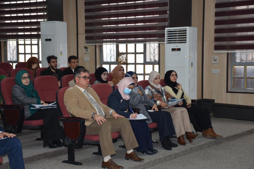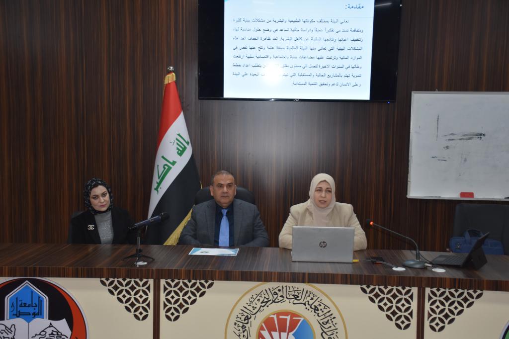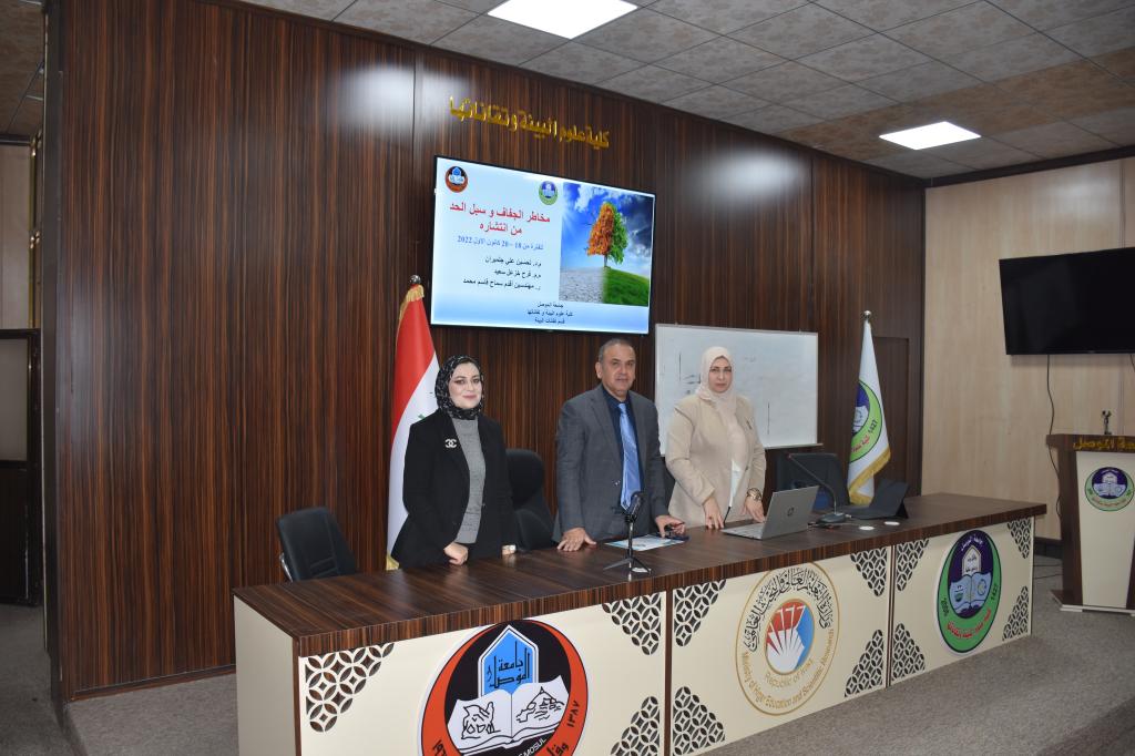 انطلاق اعمال الدورة التدريبية الموسومة مخاطر الجفاف وسبل الحد من انتشاره…انطلقت صباح اليوم الاحد 18 كانون الاول 2022 اعمال الدورة التدريبية الموسومة “مخاطر الجفاف وسبل الحد من انتشاره” التي تقيمها كلية علوم البيئة وتقاناتها وباشراف مباشر من لدن السيدة عميد الكلية الاستاذ المساعد الدكتورة يسرى مجيد الشاكر.تناولت المحاضرة الاولى التي قدمتها المدرس المساعد فرح خزعل سعيد تعريف مفهوم الجفاف الذي هو احدى اهم الكوارث البيئية في العالم وتوضيح مصطلح الجفاف حسب تخصصات المجتمع كل حسب اختصاصه بالاضافة الى انواع الجفاف وتصانيفه. كما تم تسليط الضوء على الاثار البيئية والاقتصادية والاجتماعية للجفاف بالاضافة الى اقتراح بعض الحلول التي من شأنها تخفيف انتشار هذه الظاهرة.