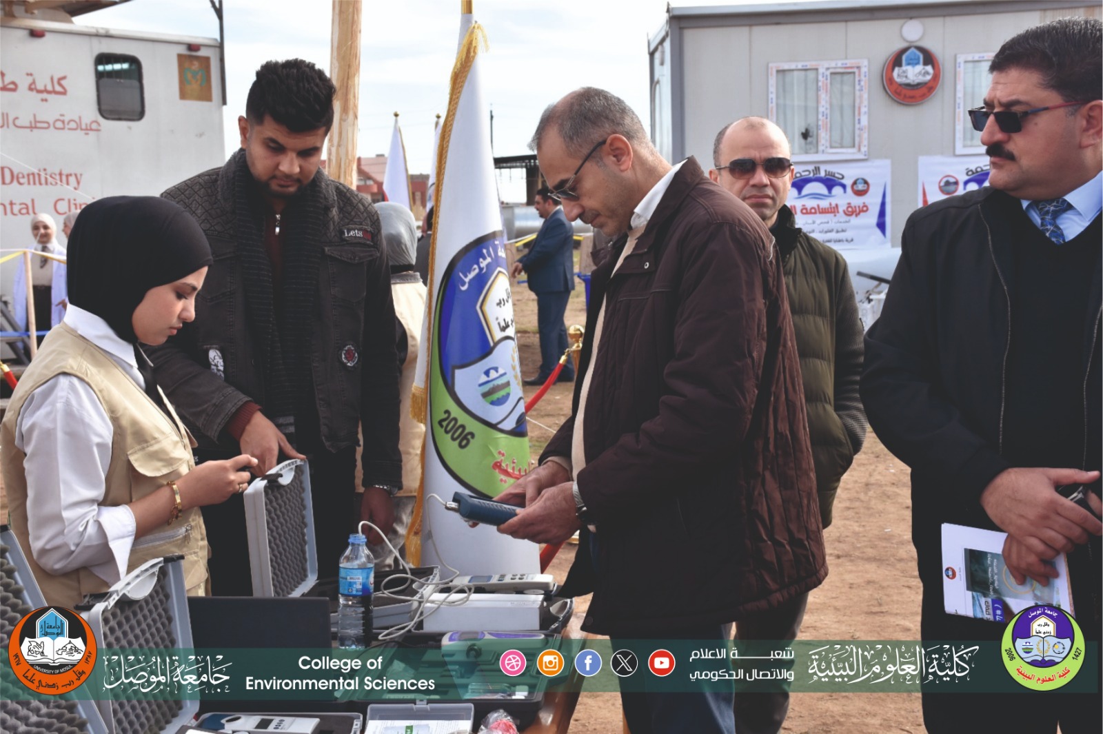 وتضمنت مشاركة الكلية الإسهام في عدد من الأنشطة الميدانية والتوعوية، من خلال مشاركة عدد من تدريسييها ومنتسبيها وطلبتها، حيث تم تسليط الضوء على الجوانب البيئية والصحية المرتبطة بتحسين الواقع الخدمي والمعيشي في المنطقة، فضلاً عن نشر الوعي بأهمية الحفاظ على البيئة والموارد الطبيعية، كما شملت فعاليات ميدانية متخصصة تمثلت بإجراء قياسات بيئية دقيقة، تضمنت تقييم جودة الهواء وقياس مستويات التلوث الضوضائي في عدد من المواقع، فضلًا عن تحليل عينات من المياه والتربة لتحديد تراكيز النترات ومستويات الأملاح فيها، باستخدام الأجهزة والمقاييس المعتمدة علميًا.
