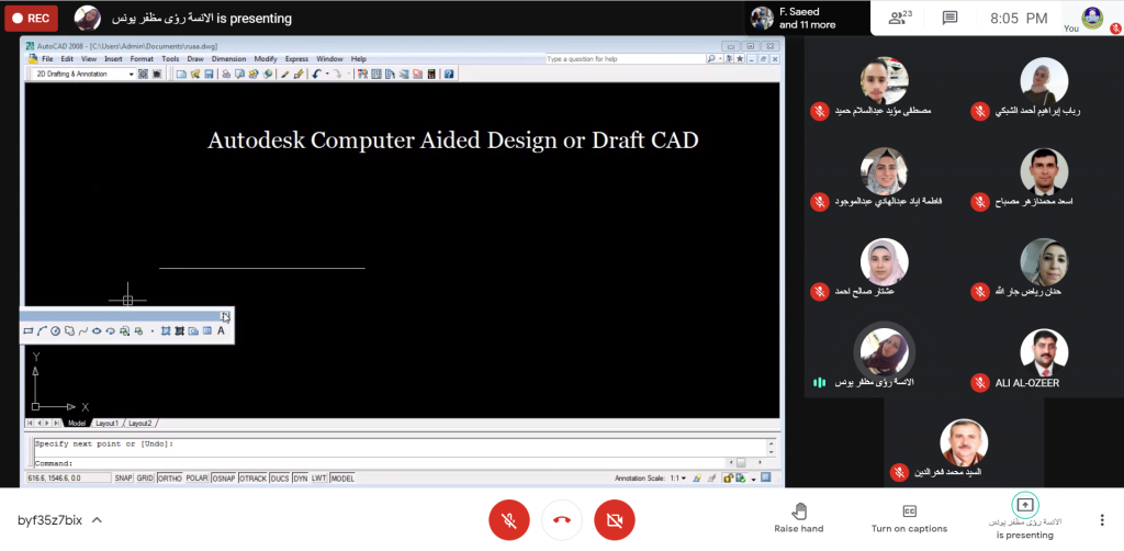 برعاية السيد رئيس جامعة الموصل الاستاذ الدكتور قصي كمال الدين الاحمدي واشراف السيدة عميد الكلية الاستاذ المساعد الدكتورة يسرى مجيد الشاكر, انطلقت اليوم الثلاثاء 18 ايار 2021 الدورة التدريبية الموسومة “اساسيات برنامج الاوتوكاد” في يومها الاول في كلية علوم البيئة وتقاناتها وعبر الفضاء الالكتروني.حيث القت المدرس رؤى مظفر يونس التدريسية في قسم تقانات البيئة محاضرة عن ايعازات الرسم الهندسي الخاص ببرنامج الاوتوكاد وتطبيقها عملياً على البرنامج.وسوف نكون غدا الاربعاء باذن الله تعالى على موعد مع محاضرة عن ايعازات التنفيذ الخاصة ببرنامج الاوتوكاد تلقيها المدرس الدكتورة رشا خالد صبري التدريسية في قسم تقانات البيئة في اليوم الثاني للدورة المذكورة في تمام الساعة الثامنة مساء.شعبة الاعلام والعلاقات العامة