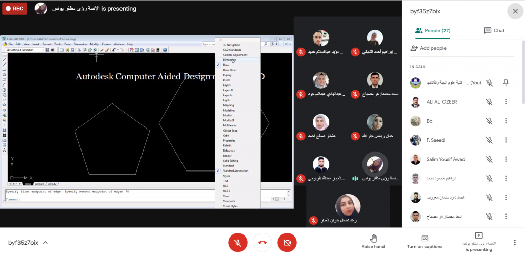 انطلاق الدورة التدريبية الخاصة باساسيات برنامج الاوتوكاد في يومها الأول في كلية علوم البيئة وتقاناتها