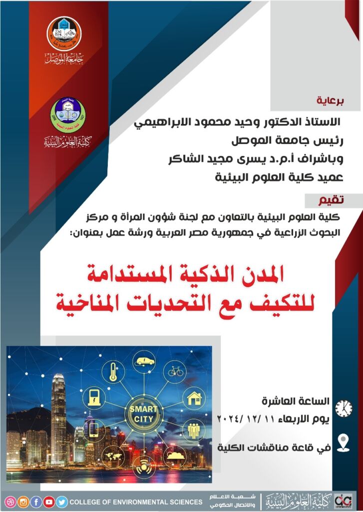 برعاية الاستاذ الدكتور وحيد محمود الابراهيمي رئيس جامعة الموصل واشراف السيدة عميد كلية العلوم البيئية الاستاذ المساعد الدكتورة يسرى مجيد الشاكر وضمن نشاطات وحدة التعليم المستمر، اقامت كلية العلوم البيئية/ قسم تقانات البيئة وبالتعاون مع رئاسة الجامعة – قسم الدراسات والتخطيط – وحدة التنمية المستدامة دورة تدريبية بعنوان (التنمية المستدامة/ الطاقة النظيفة ودورها في مجالات العلوم المختلفة) يوم الاحد الموافق ٨ كانون الاول ٢٠٢٤ والتي تستمر لمدة خمسة ايام.