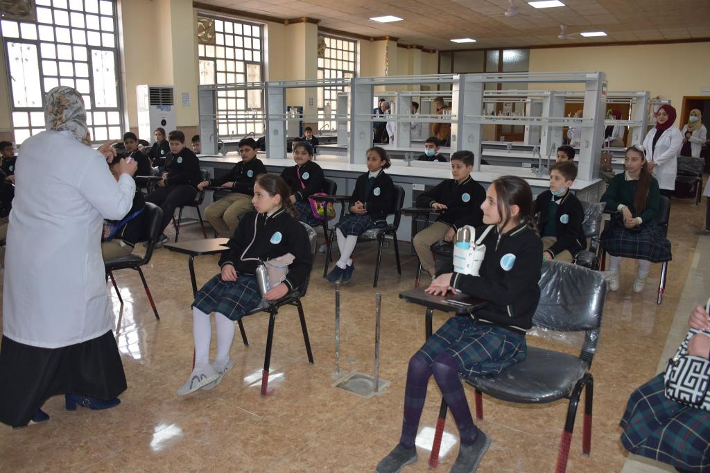 براعم مدرسة نبع العطاء الابتدائية الاهلية تجري زيارة علمية لكلية علوم البيئة وتقاناتها