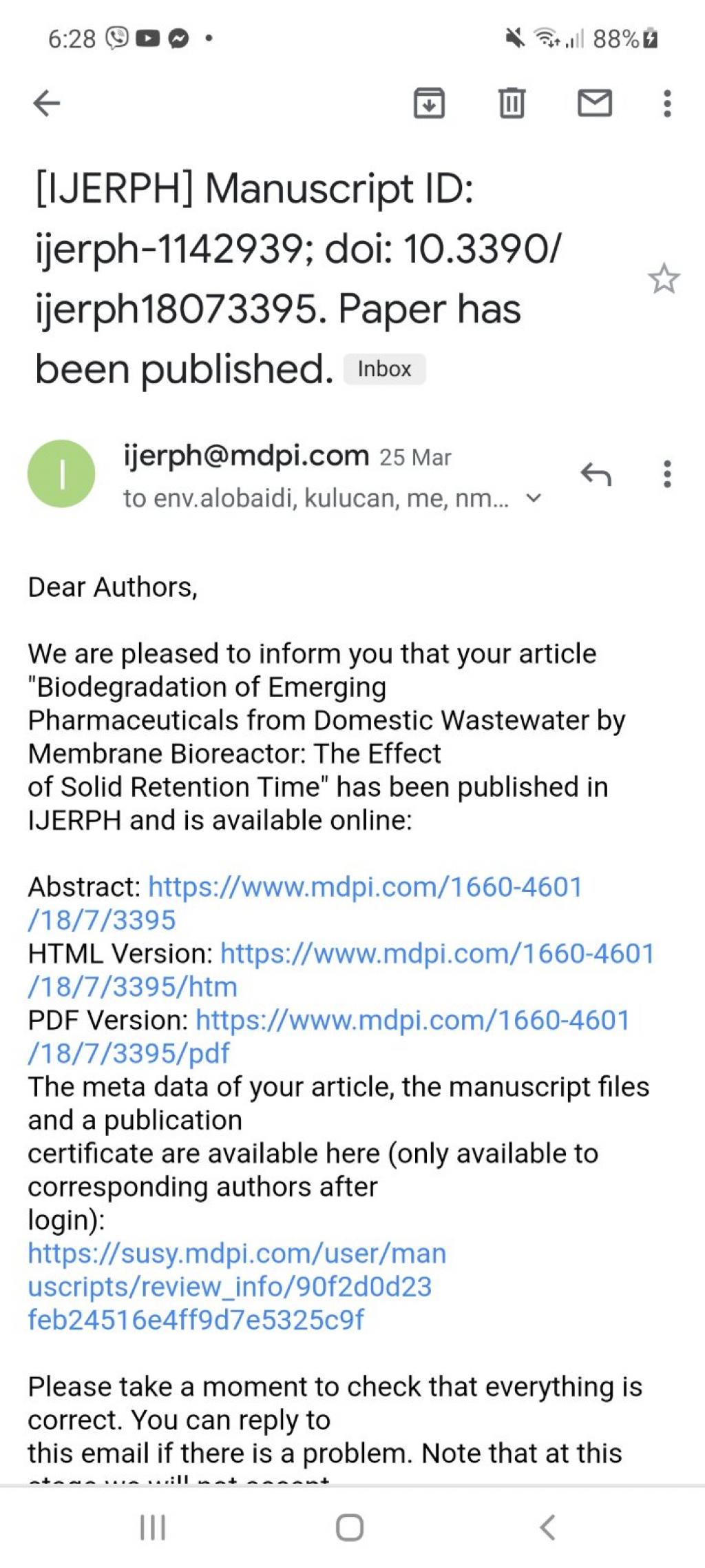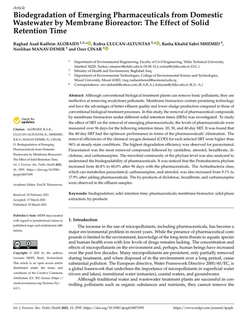 نشرت الدكتورة رشا خالد صبري التدريسية في قسم تقانات البيئة بحثا علميا رصيناً ضمن مستوعبات سكوبس بعنوان”Biodegradation of Emerging Pharmaceuticals from Domestic Wastewater by Membrane Bioreactor: The Effect of Solid Retention Time”متمنين لها دوام الموفقية والنجاحشعبة الاعلام والعلاقات العامة