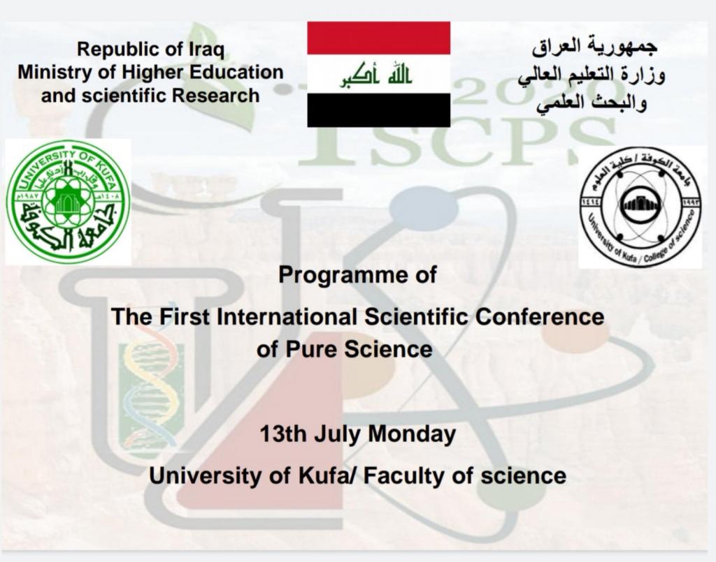 تدريسي في كلية علوم البيئة وتقاناتها يشارك في اعمال المؤتمر الدولي العلمي الأول للعلوم الصرفة المقام في جامعة الكوفة كلية العلوم