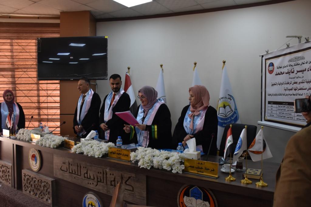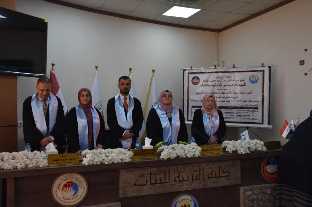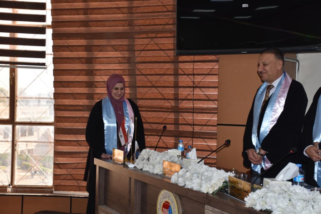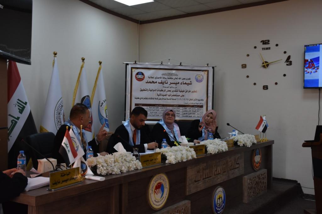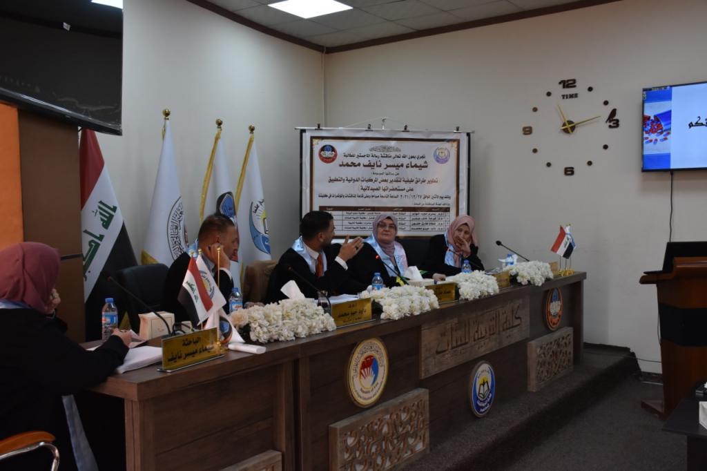 ترأست السيدة عميد الكلية الأستاذ المساعد الدكتور يسرى مجيد شهاب الشاكر لجنة مناقشة رسالة ماجستير في كل التربية للبنات / جامعة الموصل اليوم الأثنين الموافق 27 كانون الأول 2021. وبحضور السيدة عميد كلية التربية للبنات الأستاذ الدكتورة ضمياء علي عبد الله.حيث ناقشت كلية التربية للبنات/قسم الكيمياء رسالة الماجستير الموسومة “تطوير طرائق طيفية لتقدير بعض المركبات الدوائية والتطبيق على مستحضراتها الصيدلانية” للطالبة (شيماء ميسر نايف محمد).تضمنت الرسالة مقدمة عامة عن المركبات الدوائية وطريقة طيفية لتقدير المونتيلوكاست صوديوم من خلال تفاعل الاقتران التأكسدي بالاضافة الى تطوير طريقة طيفية حساسة لتقدير الايزونيازيد.تألفت لجنة المناقشة من عضوية كل من الأستاذ المساعد الدكتور فرحة خلف عمر والمدرس الدكتور عماد طارق حنون وبأشراف وعضوية الأستاذ المساعد الدكتور داود حبو محمد.شعبة الاعلام والعلاقات العامة