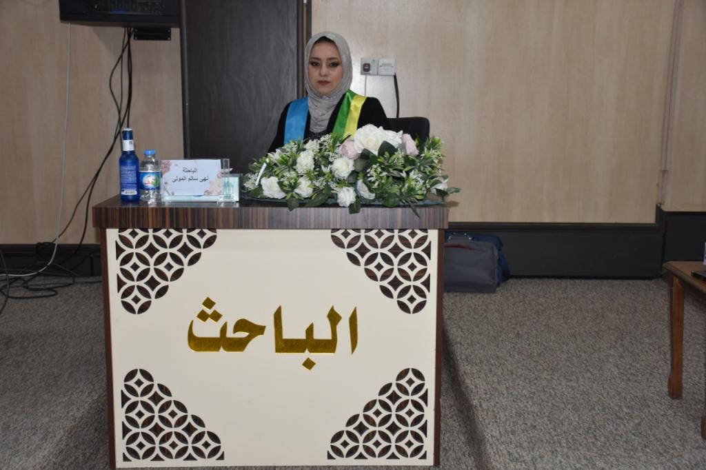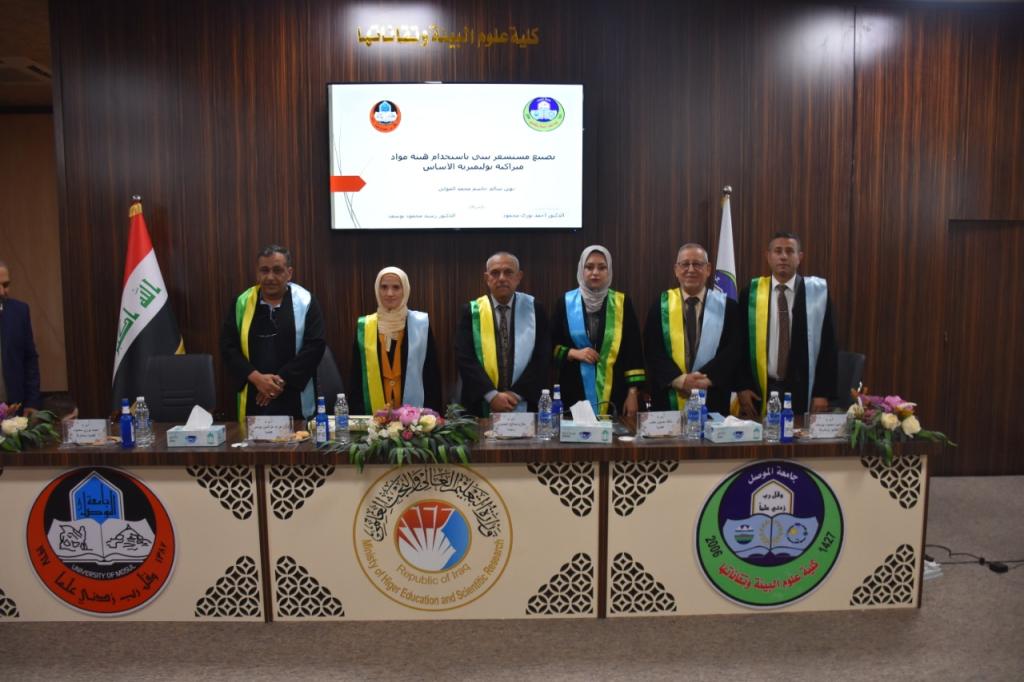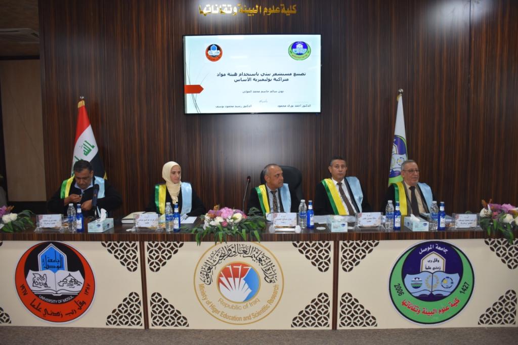 ترأس لجنة المناقشة أ.م.د.حازم صالح احمد/جامعة الموصل/فيزياء جزيئية وعضوية كل من أ.م.د. زهراء عز الدين يونس /جامعة الموصل/كيمياء حياتية و أ.م.د. مالك حسين خضر/جامعة الحمدانية/ فيزياء نووية وعضوية واشراف أ.م.د.احمد نوري محمود/جامعة الموصل/علوم مواد و أ.م.د.رشيد محمود يوسف /جامعة الموصل/فيزياء نووية.شعبة الاعلام والعلاقات العامة