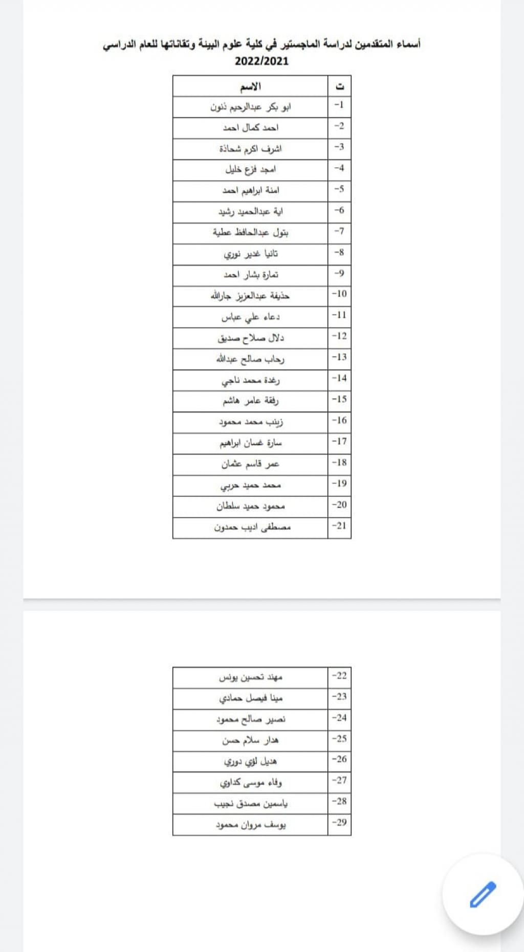 4- على الطلبة المتقدمين الالتزام بتعليمات خلية الازمة من ارتداء الكمامات والتباعد الاجتماعيادناه اسماء الطلبة المتقدمين المشمولين بالامتحان التنافسيشعبة الإعلام والعلاقات العامة
