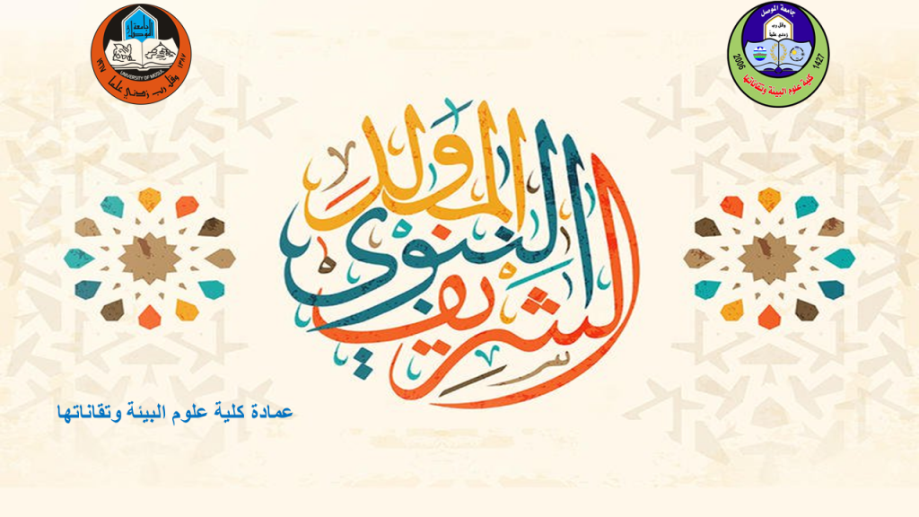 نيابة عن نفسي وعن عمادة ومنتسبي كلية علوم البيئة وتقاناتها نتقدم باسمى ايات التهاني والتبريكات الى السيد رئيس جامعة الموصل الاستاذ الدكتور قصي كمال الدين الاحمدي والى كافة منتسبي جامعة الموصل وطلابها بمناسبة مولد فخر الكائنات سيدنا محمد عليه افضل الصلاة والسلام 1442 هـ , سائلين المولى عز وجل أن يعيد هذه المناسبة على الأمة العربية والإسلامية بالخير والبركات وان يرفع عنا البلاء والوباء. الاستاذ المساعد الدكتورة يسرى مجيد الشاكر عميد كلية علوم البيئة وتقاناتها