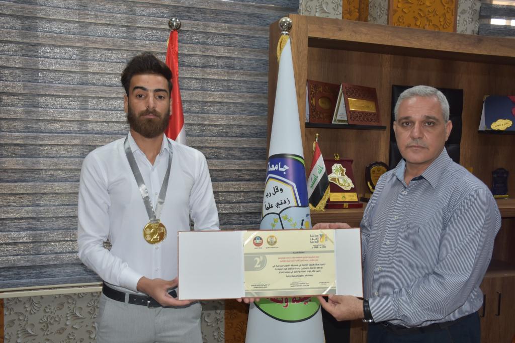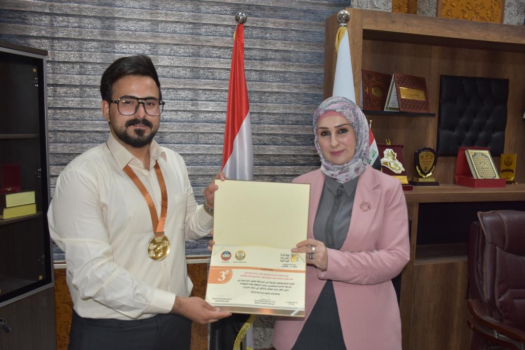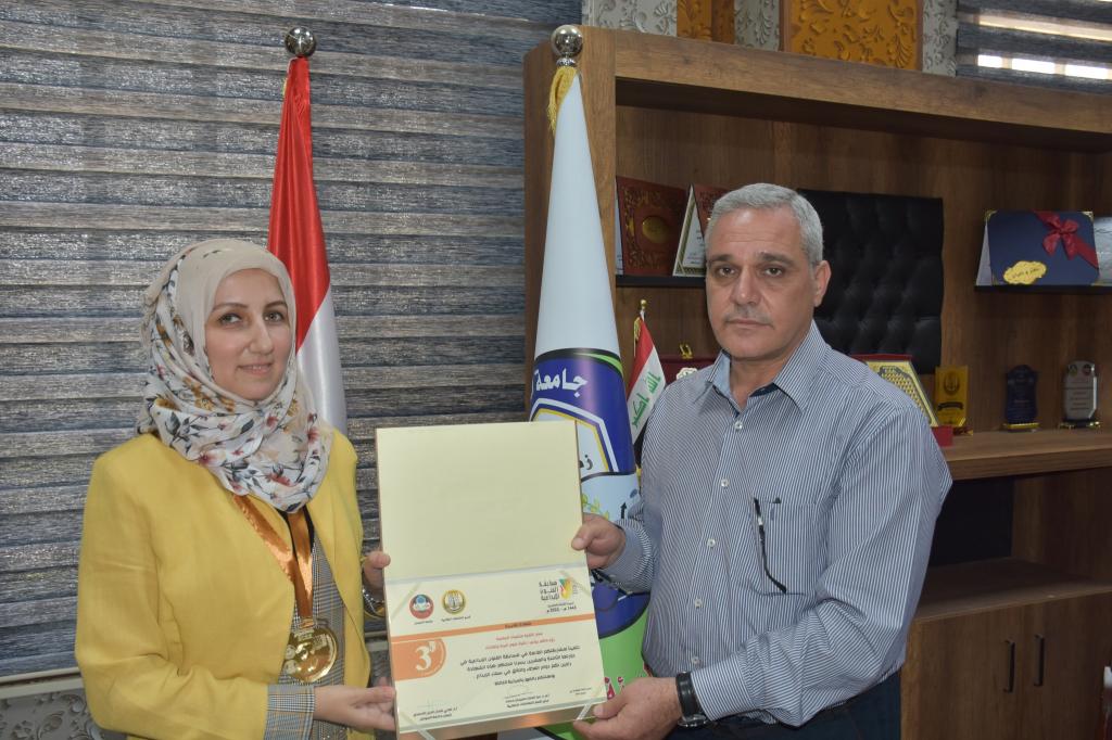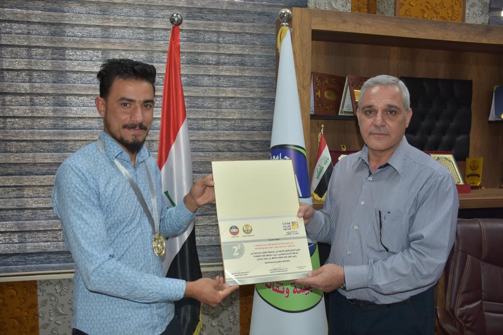 جرى صباح اليوم الاثنين 13 حزيران 2022 توزيع الشهادات التقديرية على الفائزين بمسابقة الفنون الابداعية في دورتها الثامنة والعشرون التي اقامتها رئاسة جامعة الموصل /قسم الشؤون الطلابية.حيث قام الدكتور علي بشير عزيز معاون العميد للشؤون العلمية والدكتورة شيماء خليل عبد الله معاون العميد للشؤون الادارية نيابةً عن السيدة عميد الكلية الاستاذ المساعد الدكتورة يسرى مجيد الشاكر بتوزيع الشهادات التقديرية على الفائزين وهم كل من:- السيد ضرار ظافر عبد الرحمن / مسار الطباعي الكرافيك/مسابقة التصميم/ المركز الاول.- الطالب حسين سمير حسين / مسابقة الرسم بالالوان الزيتية/المركز الاول ومسار التخطيط/ الفنون التشكيلية/ المركز الثاني.- م .م رغد حازم سعيد/ مسار البرمجيات والانظمة الحاسوبية/المركز الثاني- الطالب (خالد محمد محمود) و (محمد خضر) / مسابقة المشروع الابداعي المجتمعي/ المركز الثاني.- م. رؤى مظفر يونس/مسابقة التلاوة/ المركز الثالث- الطالب عمر ثامر شلو / عمل مشترك / مسابقة المشروع الابداعي المجتمعي/ المركز الثالث.متمنين لهم المزيد من التقدم والعطاء.شعبة الاعلام والعلاقات العامة