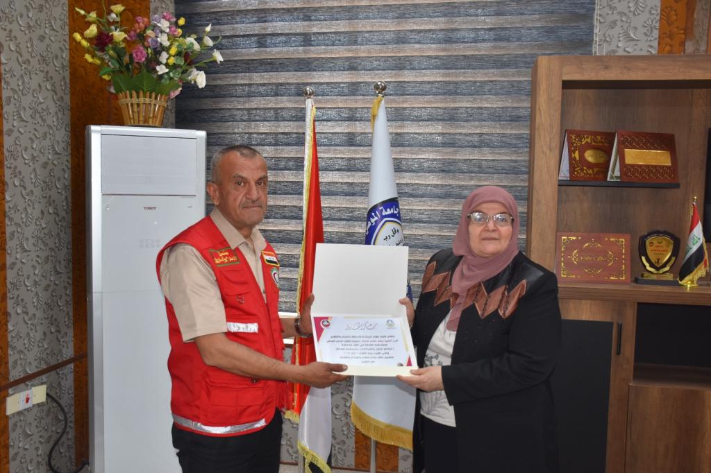 جمعية الهلال الاحمر العراقي تقييم ورشة عمل عن الاسعافات الاولية في أوقات الكوارث في كلية علوم البيئة وتقاناتها.بحضور السادة معاوني العميد للشؤون العلمية والادارية اقامت جمعية الهلال الاحمر العراقي صباح اليوم الثلاثاء 7 اذار 2023 ورشة عمل عن الاسعافات الاولية في أوقات الكوارث في كلية علوم البيئة وتقاناتها وبالتعاون مع شعبة الدفاع المدني في قاعة المناقشات في الكلية.قدم خلالها الدكتور بشار عبد ربه والسيد فلاح ايوب حسين والسيد راكان نظير داؤد محاضراتها تناولت شروحات تفصيلية عن الاسعافات الاولية وتوفير المستلزمات اللازمة لإنقاذ المصابين وكذلك التنبيه من الحوادث والكوارث ومخاطرها وطرق الوقاية منها تخللتها نقاشات واستفسارات تم اجابتها من ذوي الاختصاص.