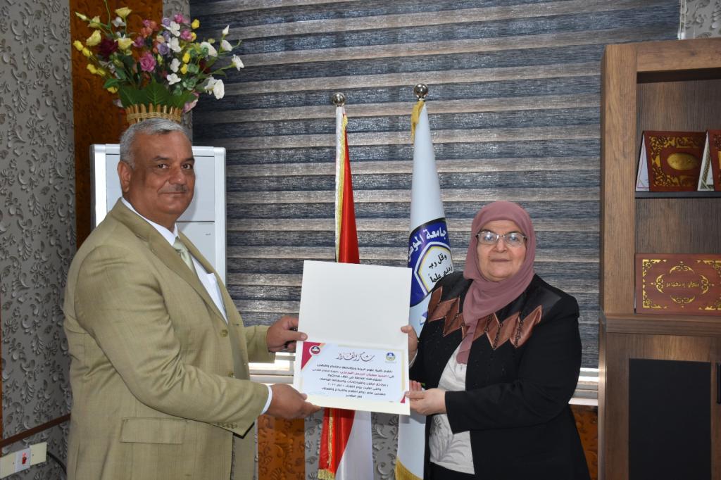 وفي ختام الورشة قدمت السيدة عميد الكلية الاستاذ المساعد الدكتورة يسرى مجيد الشاكر في مكتبها الخاص شهادات تقديرية للسادة المحاضرين معبرة عن شكرها وامتتناها لما قدموه من جهد ومعلومات قيمة خلال الورشة متمنية لهم المزيد من العطاء والتقدم.شعبة الاعلام والعلاقات العامة