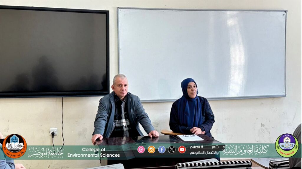 باشراف السيد عميد كلية العلوم البيئية الدكتور مثنى جاسم الطائي وبمتابعة وحضور السيد رئيس قسم تقانات البيئة الاستاذ المساعد الدكتور حازم جمعة محمود،اقيم في قسم تقانات البيئة وبالاشتراك مع قسم الدراسات والتخطيط / وحدة التنمية المستدامة في رئاسة جامعة الموصل حلقة دراسية بعنوان ” أضرار و فوائد المواد الكيميائية ” قدمتها م.م الأء جاسم محمد التدريسية في قسم تقانات البيئة بكليتنا.