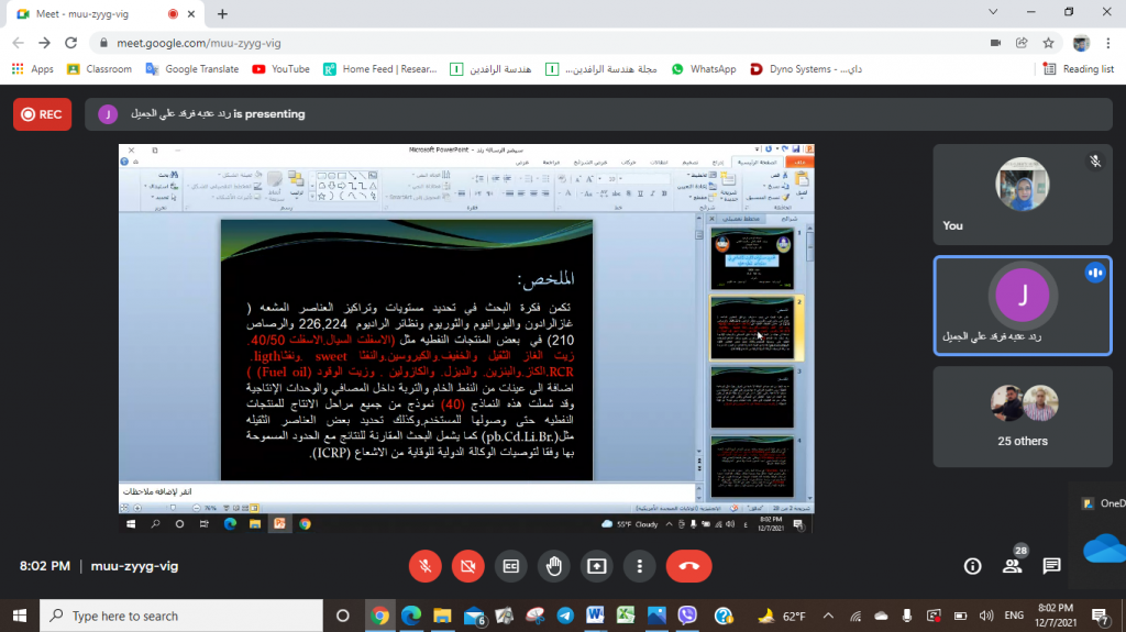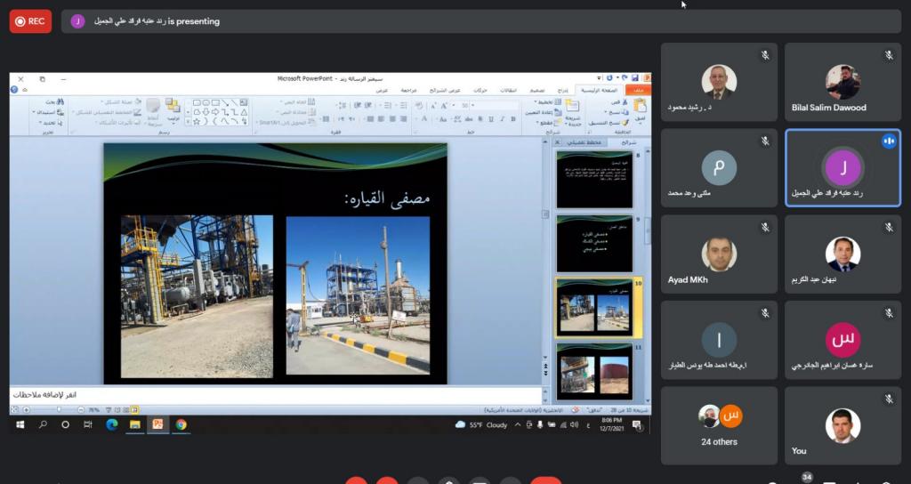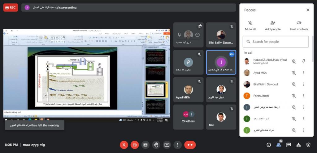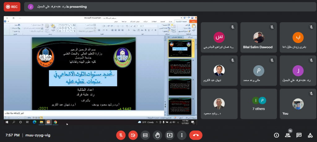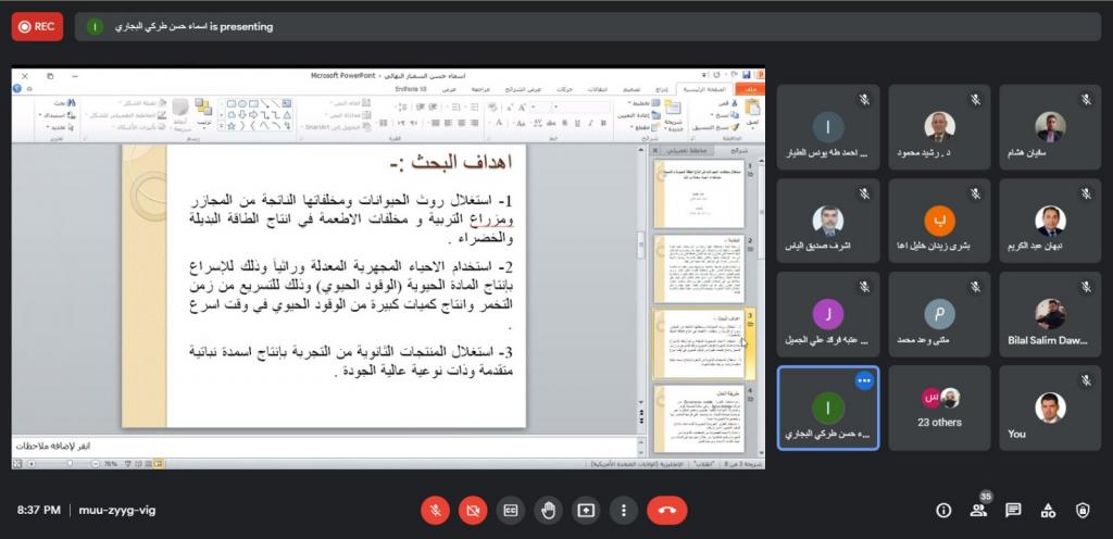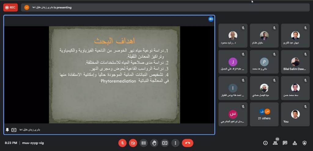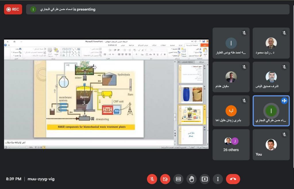 جرت مساء يوم الثلاثاء الموافق 7 كانون الاول 2021م حلقة نقاشية لطلبة الدراسات العليا في كلية علوم البيئة وتقاناتها وبحضور السيد رئيس قسم علوم البيئة والسادة اساتذة القسم. حيث قامت الطالبة رند عتبة فرقد بعرض مقترح بحثها الموسوم “تحديد مستويات التلوث الاشعاعي في منتجات نفطية محلية ” بإشراف الاستاذ المساعد الدكتور رشيد محمود يوسف والاستاذ المساعد الدكتور نبهان عبد الكريم يهدف بحثها الى تحديد مستويات التلوث الاشعاعي في المنتجات النفطية من خلال تحديد نسب كل من العناصر: نظائر الراديوم والرصاص واليورانيوم وقياس النشاط الاشعاعي لغاز الرادون والثوريوم بالاضافة الى محاولة تحديد تراكيز العناصر المشعة وتراكيز العناصر الثقيلة في المنتجات النفطية المحلية من خلال جهازXRF وتحديد العناصر الثقيله في التربه بأستخدام جهازatomic absorption spectroscopy. عرضت بعدها الطالبة بشرى زيدان خليل مقترحها حول البحث الموسوم “خفض تراكيز الملوثات في مياه نهر الخوصر باستخدام النباتات ” بإشراف الدكتورة انسام احمد سعدون والاستاذ المساعد طه احمد الطيار والذي يهدف الى دراسة نوعية مياه نهر الخوصر من الناحية الفيزياوية والكيمياوية وتراكيز المعادن الثقيلة و مدى صلاحيتها للاستخدامات المختلفة بالاضافة الى تشخيص النباتات المائية الموجودة حاليا وإمكانية الاستفادة منها في المعالجة النباتية Phytoremediation. واختتمت الحلقة النقاشية بالطالبة اسماء حسين طركي حيث قدمت عرض لما ستقوم به خلال بحثها الموسوم “استغلال مخلفات الحيوانات في انتاج الطاقة الحيوية والاسمدة باستخدام احياء معدلة وراثيا” بإشراف الدكتور ايمن محمد جبر البنا والذي يهدف الى استغلال روث الحيوانات ومخلفاتها الناتجة من المجازر ومزارع التربية ومخلفات الاطعمة في انتاج الطاقة البديلة والخضراء واستخدام الاحياء المجهرية المعدلة وراثيا للاسراع بانتاج المادة الحيوية وتسريع زمن التخمر بالاضافة الى استغلال المنتجات الثانوية من التجربة بانتاج اسمدة نباتية متقدمة وذات نوعية عالية الجودة. استمع الطلبة الى نصائح وملاحظات الاساتذة الحاضرين التي اغنتهم بالمعلومات القيمة للاستفادة منها في انجاز بحوثهم.شعبة الاعلام والعلاقات العامة