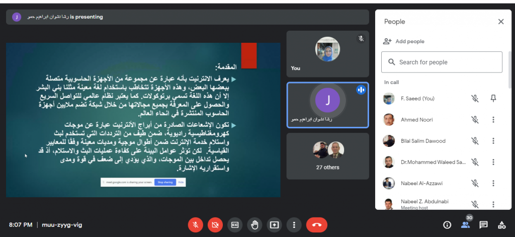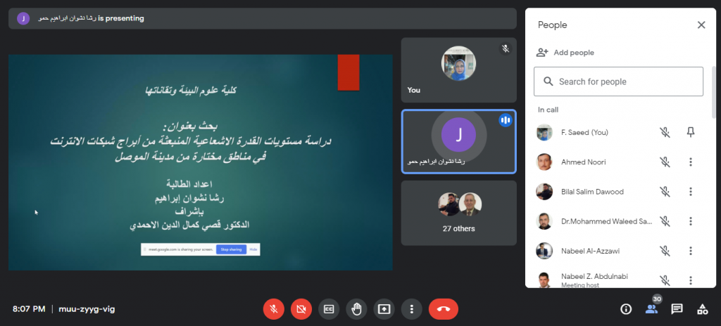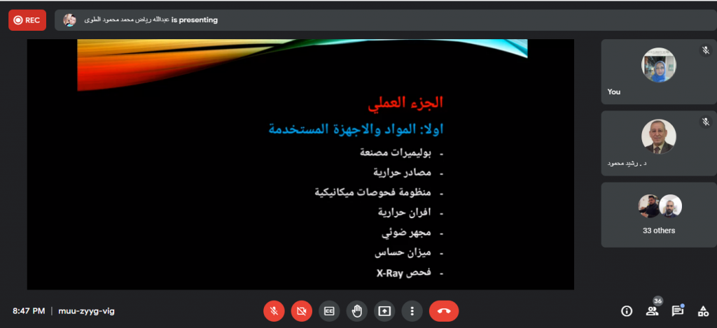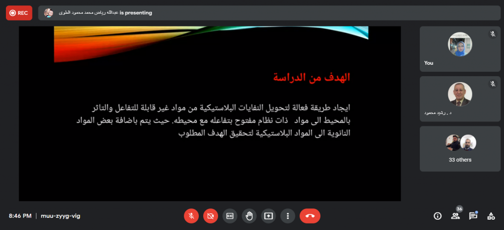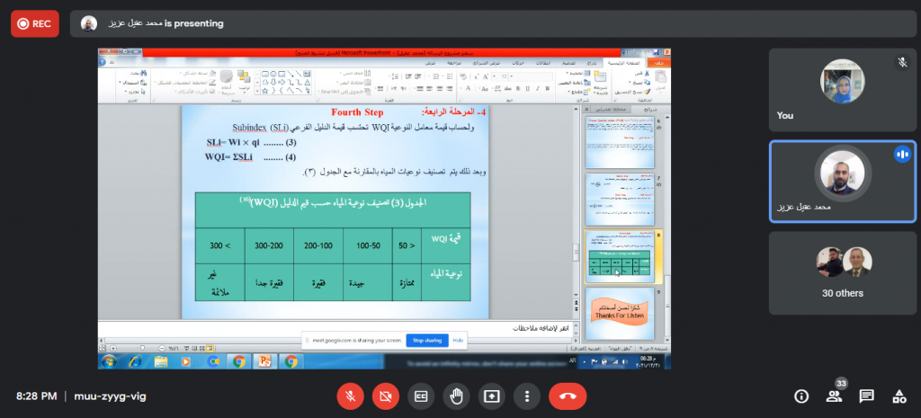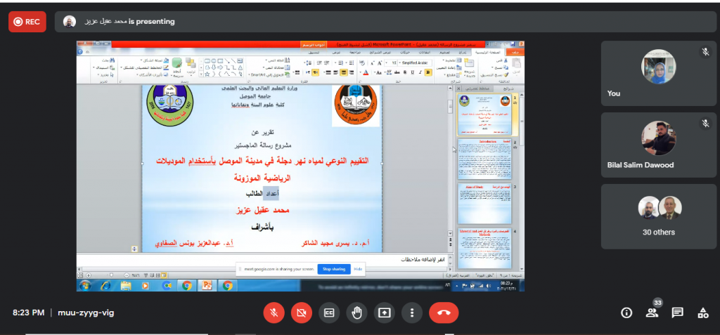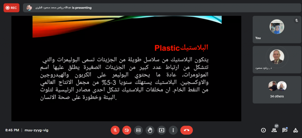 جرت مساء يوم الثلاثاء الموافق 21 كانون الاول 2021م حلقة نقاشية لطلبة الدراسات العليا في كلية علوم البيئة وتقاناتها وبحضور السيد رئيس قسم علوم البيئة والسادة اساتذة القسم. حيث قامت الطالبة رشا نشوان إبراهيم بعرض مقترح بحثها الموسوم ” دراسة مستويات القدرة الاشعاعية المنبعثة من أبراج شبكات الانترنت في مناطق مختارة من مدينة الموصل ” بإشراف الاستاذ الدكتور قصي كمال الدين الاحمدي، يهدف بحثها الى قياس مستويات كثافة القدرة الاشعاعية المنبعثة من أبراج شبكات الأنترنيت في مناطق مختارة من مدينة الموصل، وتحديد ساعات الذروة والمسافة الأقرب لشدة الإشعاع من خلال قياس كثافة القدرة الاشعاعية لعدد من الساعات وعلى مسافات مختلفة، ومن ثم مقارنة النتائج التي سيتم الحصول عليها من قياس القدرة الإشعاعية المنبعثة من أبراج الانترنيت بمعايير السلامة الدولية.عرض بعدها الطالب محمد عقيل عزيز مقترح حول البحث الموسوم ” التقييم النوعي لمياه نهر دجلة في مدينة الموصل بأستخدام الموديلات الرياضية الموزونة ” بإشراف الاستاذ المساعد الدكتورة يسرى مجيد الشاكر والاستاذ الدكتور عبد العزيز يونس الصفاوي والذي يهدف الى المتابعة الدورية لمياه نهر دجلة في مدينة الموصل وذلك بسبب نوعية المطروحات التي تصل مياه النهر سواء اكانت منزلية اوصناعية او زراعية وعدم وجود محطات معالجة لهذه المطروحات وتأثيرها على نوعية مياه النهر من خلال اجراء التقييم النوعي للفحوصات الفيزيائية والكيميائية والبايولوجية وادخال قيم الفحوصات في معادلات رياضية موزونة تعكس التداخلات بين هذه القيم واعطاء نتائج يمكن ان تصنف نوعية مياه النهر من اجل استخدامها للأغراض المختلفة كأستخدامها للشرب والري وسقي المواشي..الخ.واختتمت الحلقة النقاشية بالطالب عبدالله رياض حيث قدم عرض لما سيقوم به خلال بحثه الموسوم ” معالجة النفايات البلاستيكية باستخدام تقنيات نانوية ” بإشراف الدكتور احمد نوري احمد والاستاذ المساعد الدكتور رشيد محمود يوسف والذي يهدف الى ايجاد طريقة فعالة لتحويل النفايات البلاستيكية من مواد غير قابلة للتفاعل والتأثر بالمحيط الى مواد ذات نظام مفتوح بتفاعله مع محيطه. حيث يتم باضافة بعض المواد النانوية الى المواد البلاستيكية لتحقيق الهدف المطلوب. استمع الطلبة الى نصائح وملاحظات الاساتذة الحاضرين التي اغنتهم بالمعلومات القيمة للاستفادة منها في انجاز بحوثهم.شعبة الاعلام والعلاقات العامة